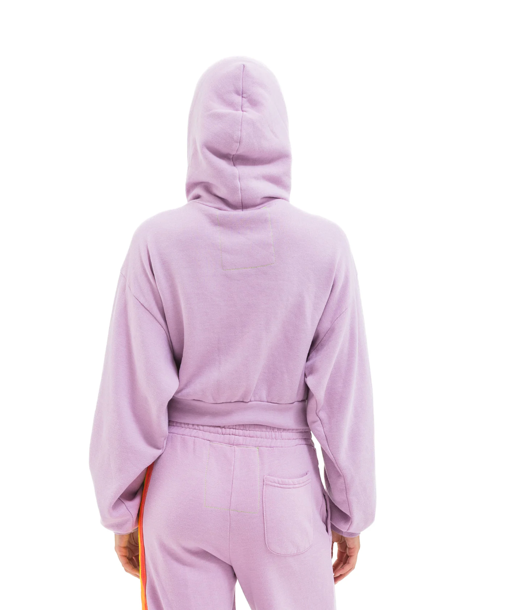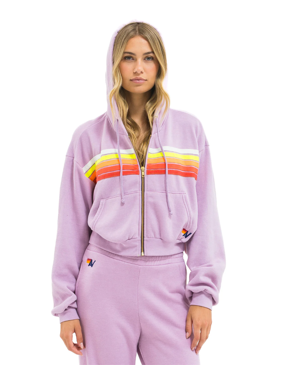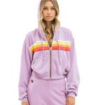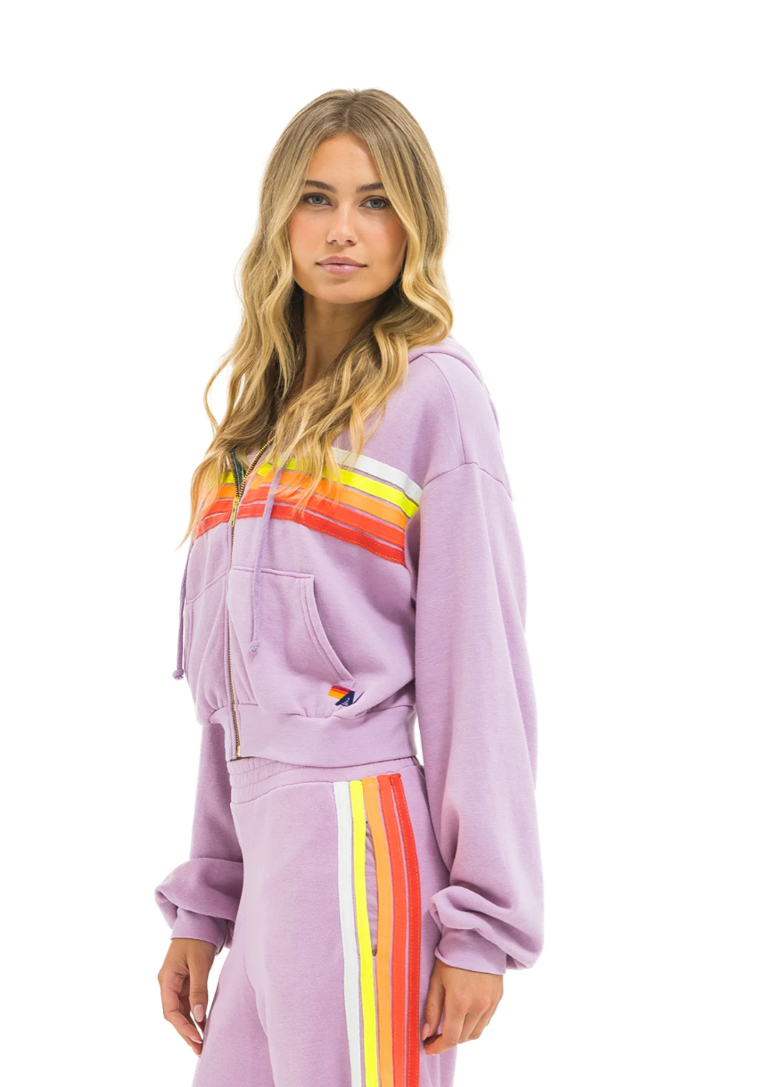 Aviator Nation - 5 Stripe Cropped Zip Hoodie - Mauve/White Neon
