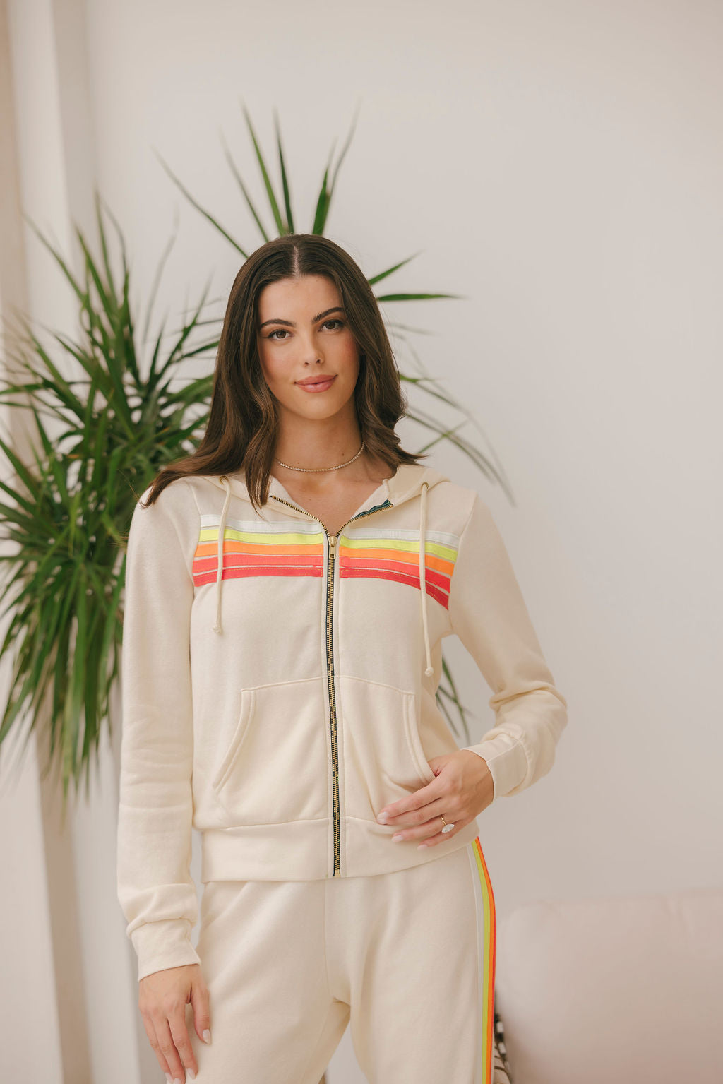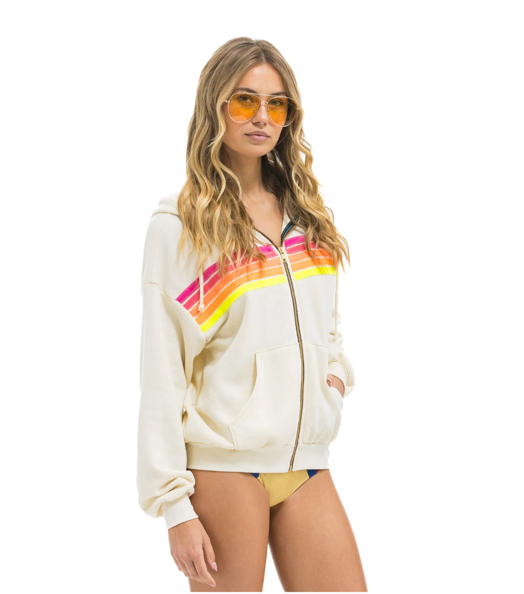 Aviator Nation - 5 Stripe Hoodie - Vintage White / Neon