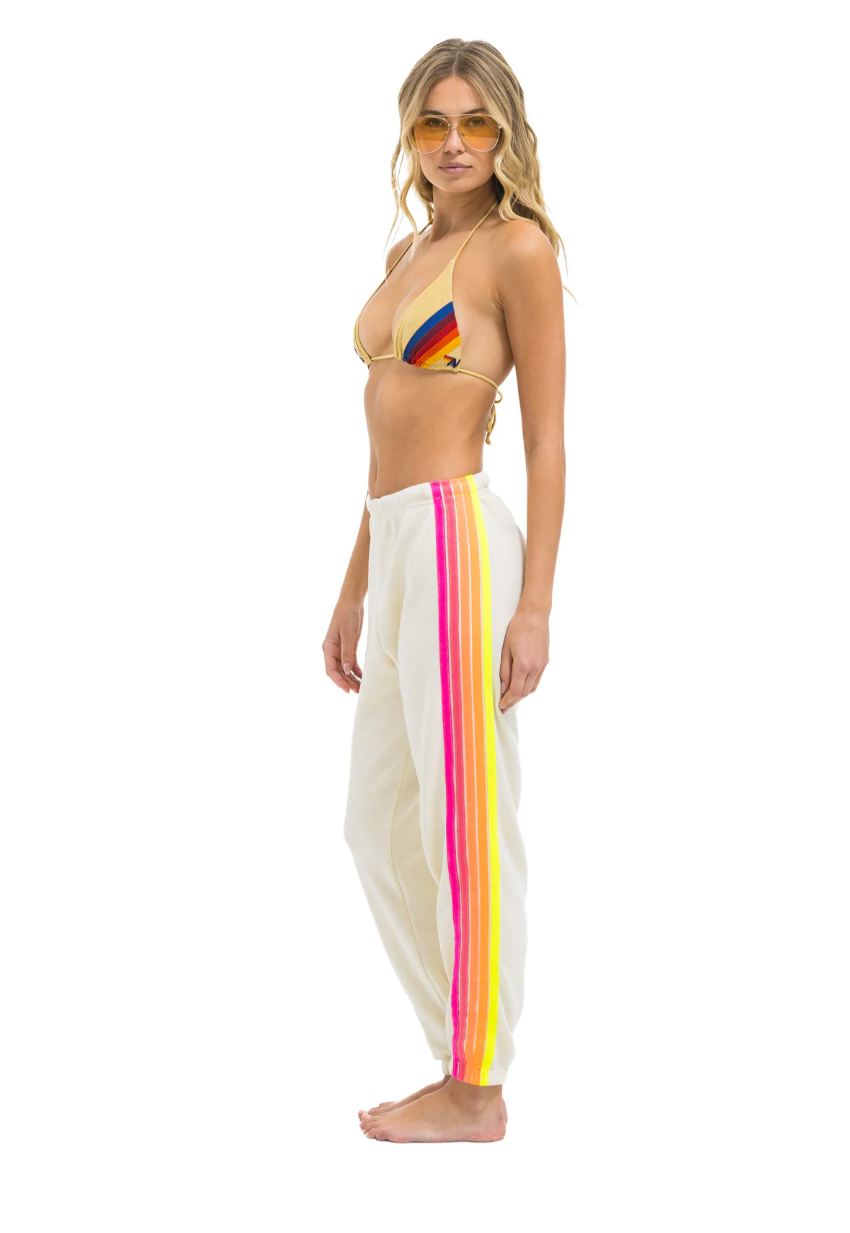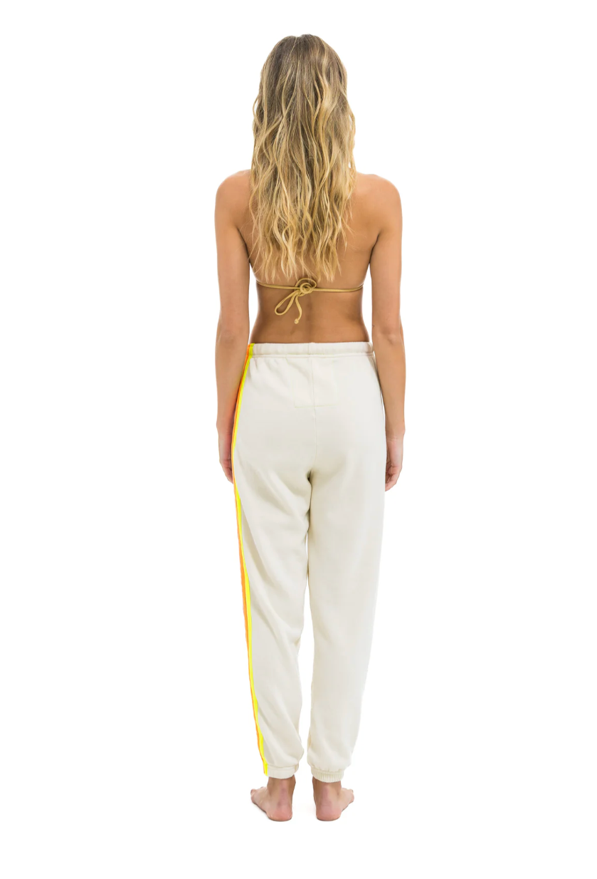 Aviator Nation - 5 Stripe Women's Sweatpants - Vintage White + Neon