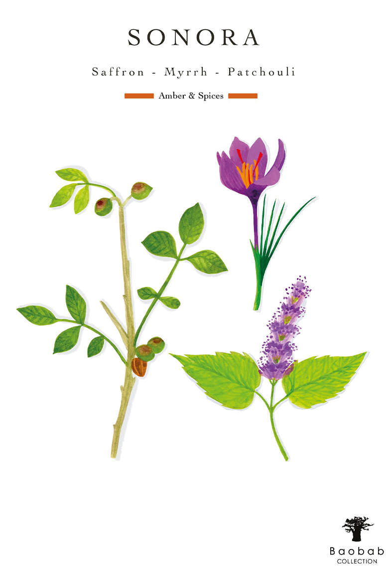 Saffron - Myrrh - Patchouli The spicy scent is reminiscent of the cinematic setting of the Mexican desert after which these items are named. A creative blend of saffron, myrrh and patchouli spreads warm, spicy notes throughout your home.