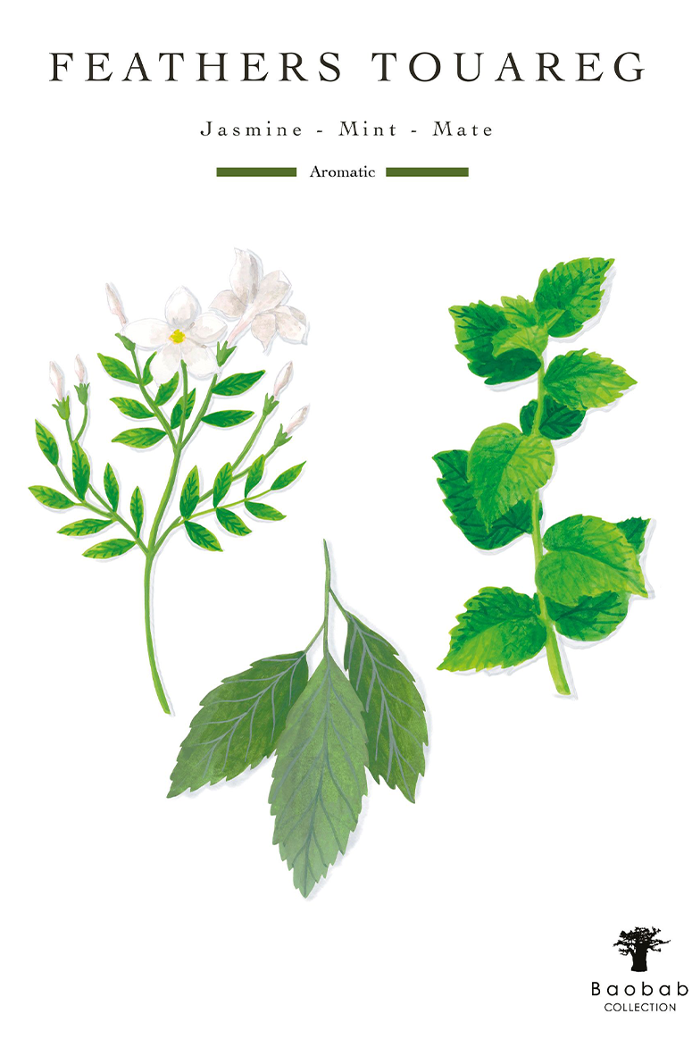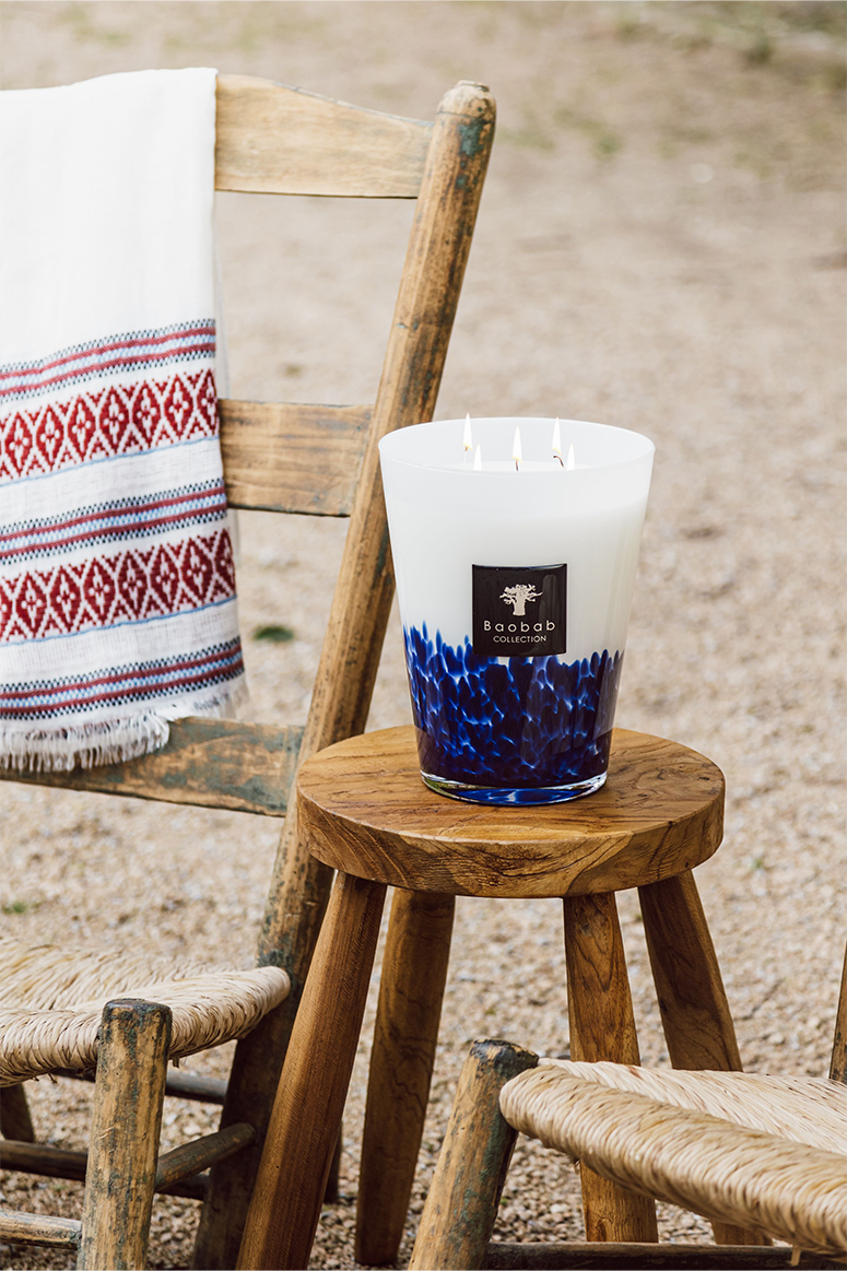 The Feathers Touareg scented candle references the Tuaregs’ majestic garments with a in blue details. Each glass is unique as the color is placed in a random fashion, giving it a feathered tribal effect. Its fragrance will take you to the gates of the Sahara.