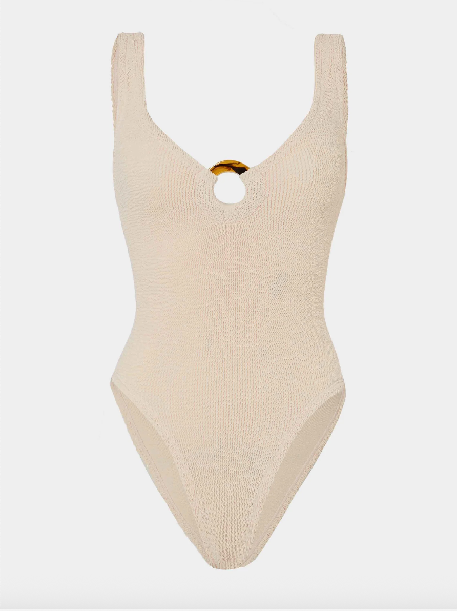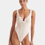 Modern swimsuit, timeless appeal. With tortoiseshell hoop detailing and a deep-v neckline, Celine has understated glamour down.