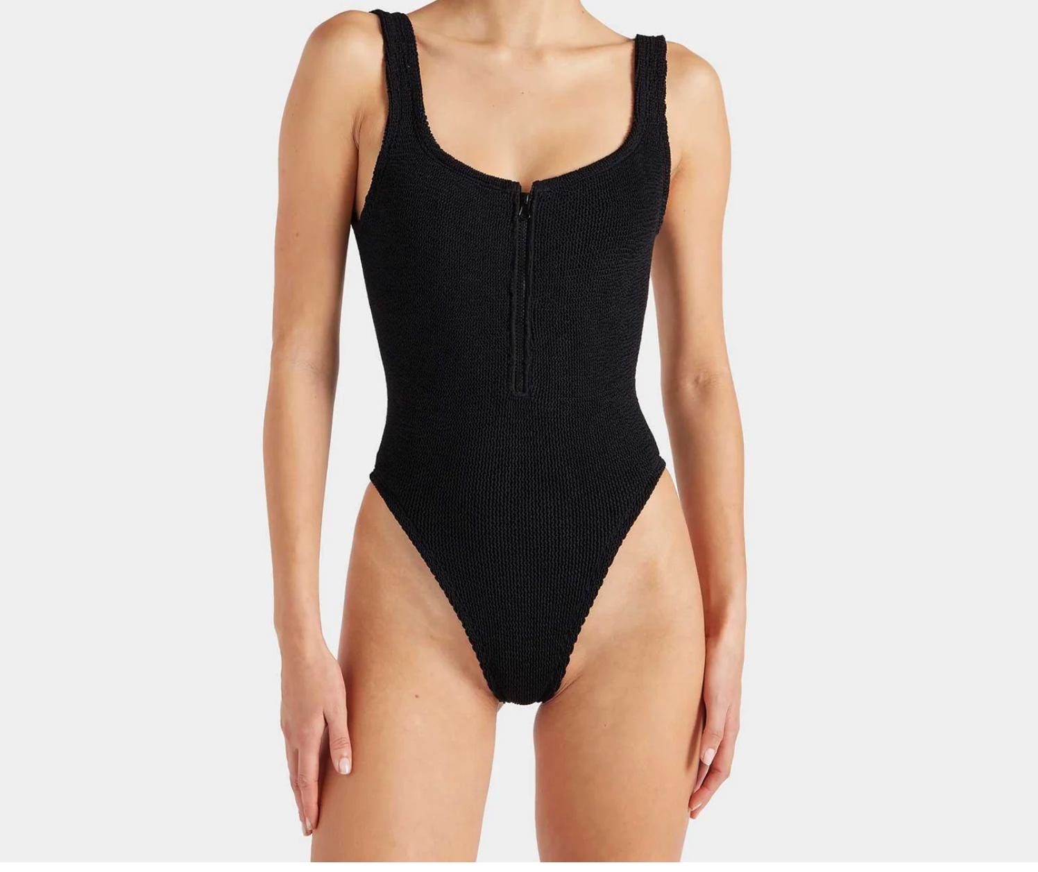 Brought back from the Hunza G 90s archives, the Dallas swim features a daring zip front, square neckline, and scooped back – in our iconic Original Crinkle™ fabrication.