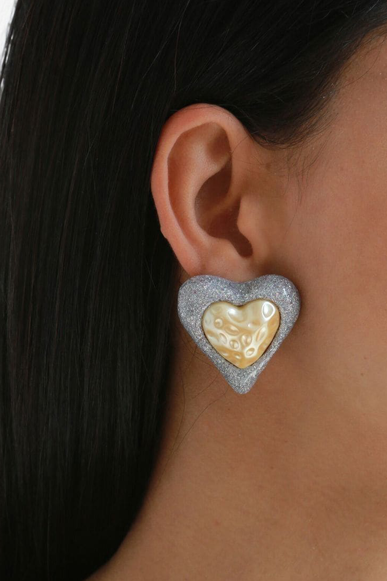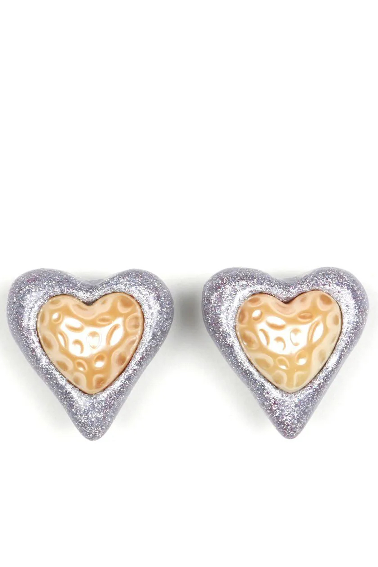 Julietta - Resin Heart Studs - Silver Glitter