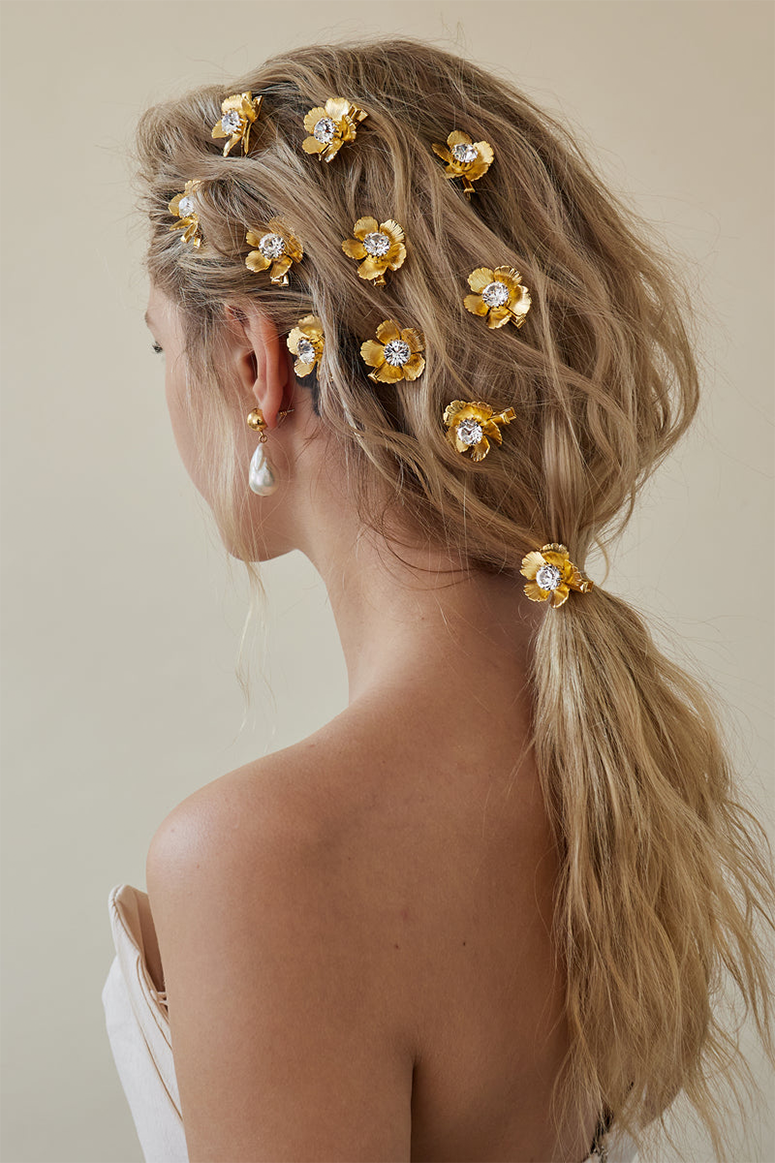 Lelet NY - Eden Floral Crystal Clip Set - Gold