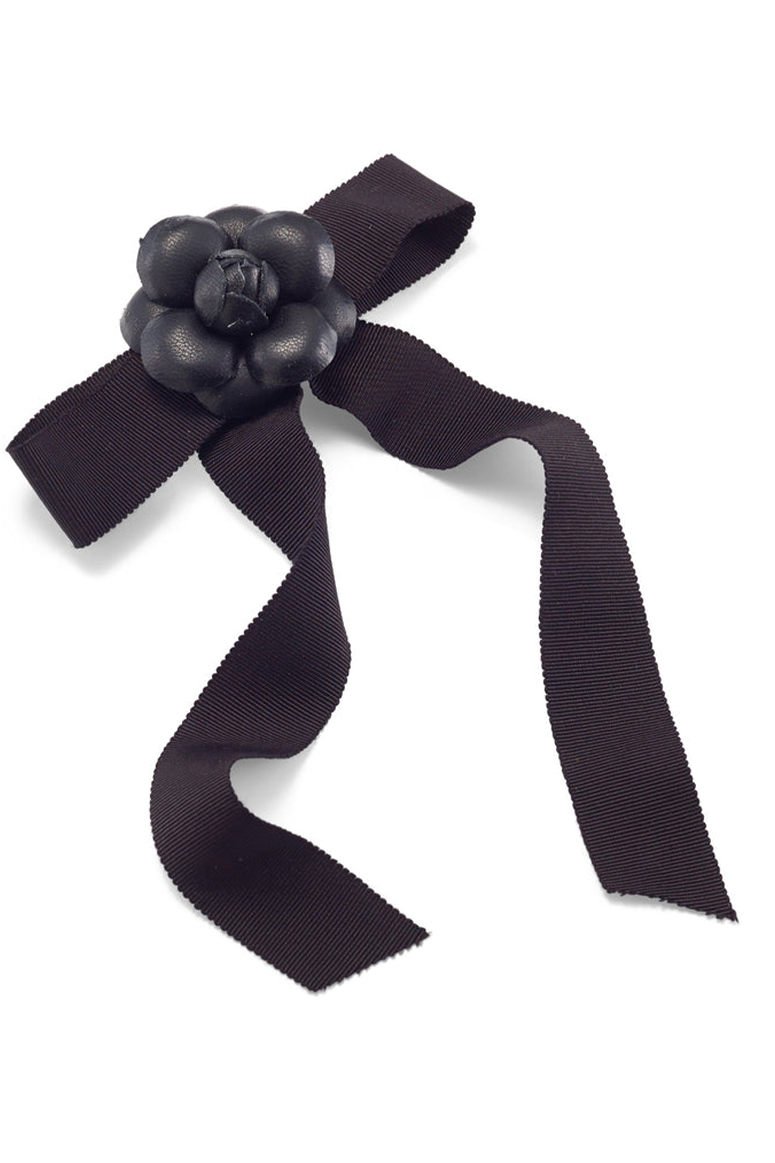 The Jenna Petite Bow was exclusively designed for Jenna Ortega to wear to the MET Gala 2023 - Karl Lagerfeld: A Line of Beauty. While it didn't make it to the carpet, this design was the most loved. Meticulously designed with an elevated leather rosette at its center, this bow will add a subtle statement to your look. Our rosettes are exquisitely handmade in a prestigious factory in Manhattan.