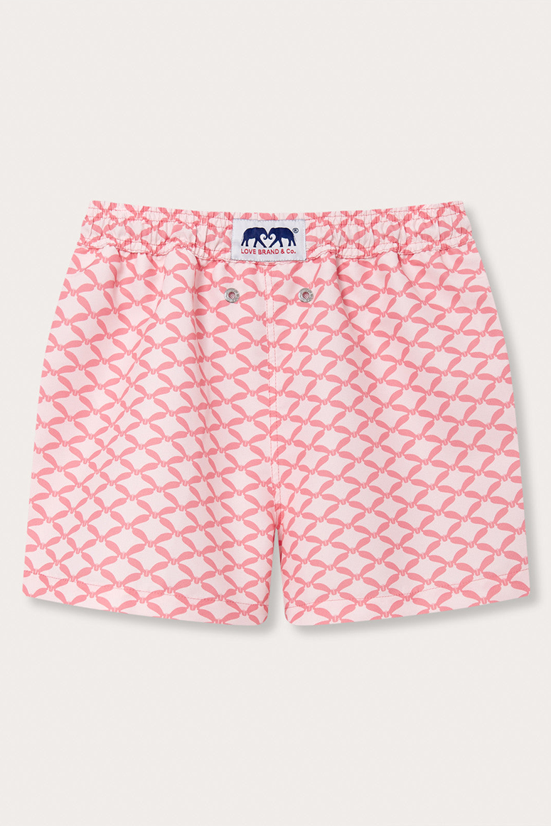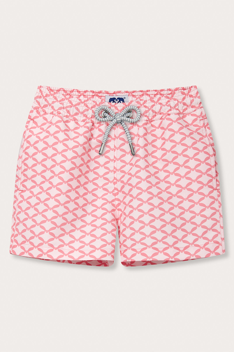 Let your boys make a splash in the Ray Rhythm Staniel Swim Shorts. Crafted from quick-dry, 100% recycled fabrics, these luxurious shorts offer a sophisticated take on beachwear with their distinct diamond geometric print of grand manta rays in watermelon and light pink. Comfortable and stylish, these shorts will let your boys look and feel their best on sunny days.