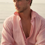 Our Abaco mens linen shirt is designed for those picture-perfect summer days, surrounded by crystal clear water and blue skies. From relaxing on the beach to sipping cocktails by the pool, this men’s linen shirt features a cool pastel pink hue that will ensure you ooze effortless sophistication no matter your plans. All of our men’s shirts are sustainably created from 100% linen and finished with our signature recycled corozo nut buttons - so you can feel good about adding it to your holiday wardrobe. Just pair this men’s linen shirt with the matching swimming trunks and your favourite sunglasses to refine your style in an instant.