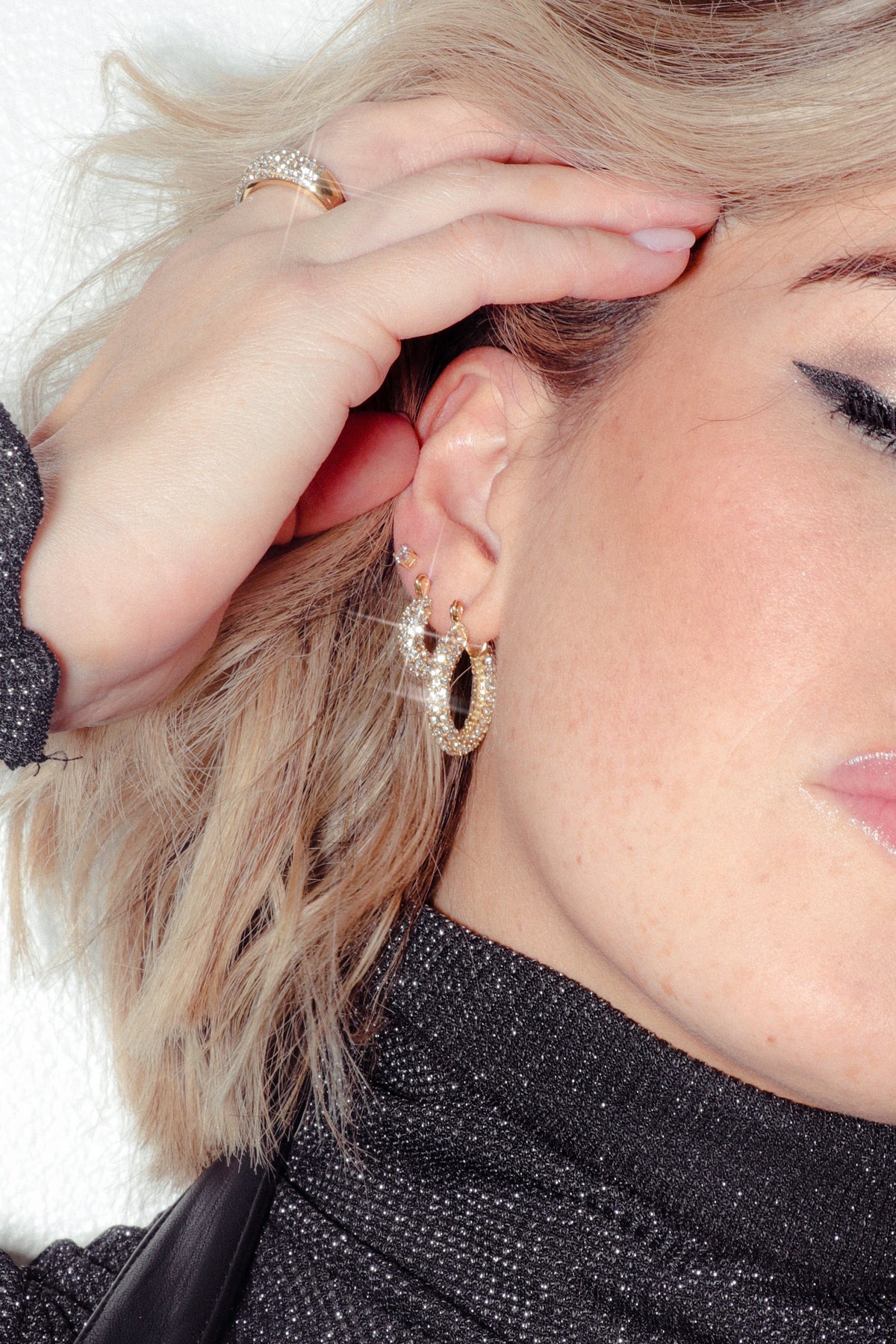 The It Hoop for girls that get it — meet Audrey. Available in both Hoop and Huggie sizes, this clickhoop pavé diamond earring is the statement you never knew you couldn't live without. Small in diameter but big in statement — Audrey is light (and small) enough to wear every single day — yet sophisticated enough to rock with formal attire. The Audrey's are stunning just as much as they are meaningful. From brunch to prom to bridal galore and everything in between — this hoop is not a want but a need.