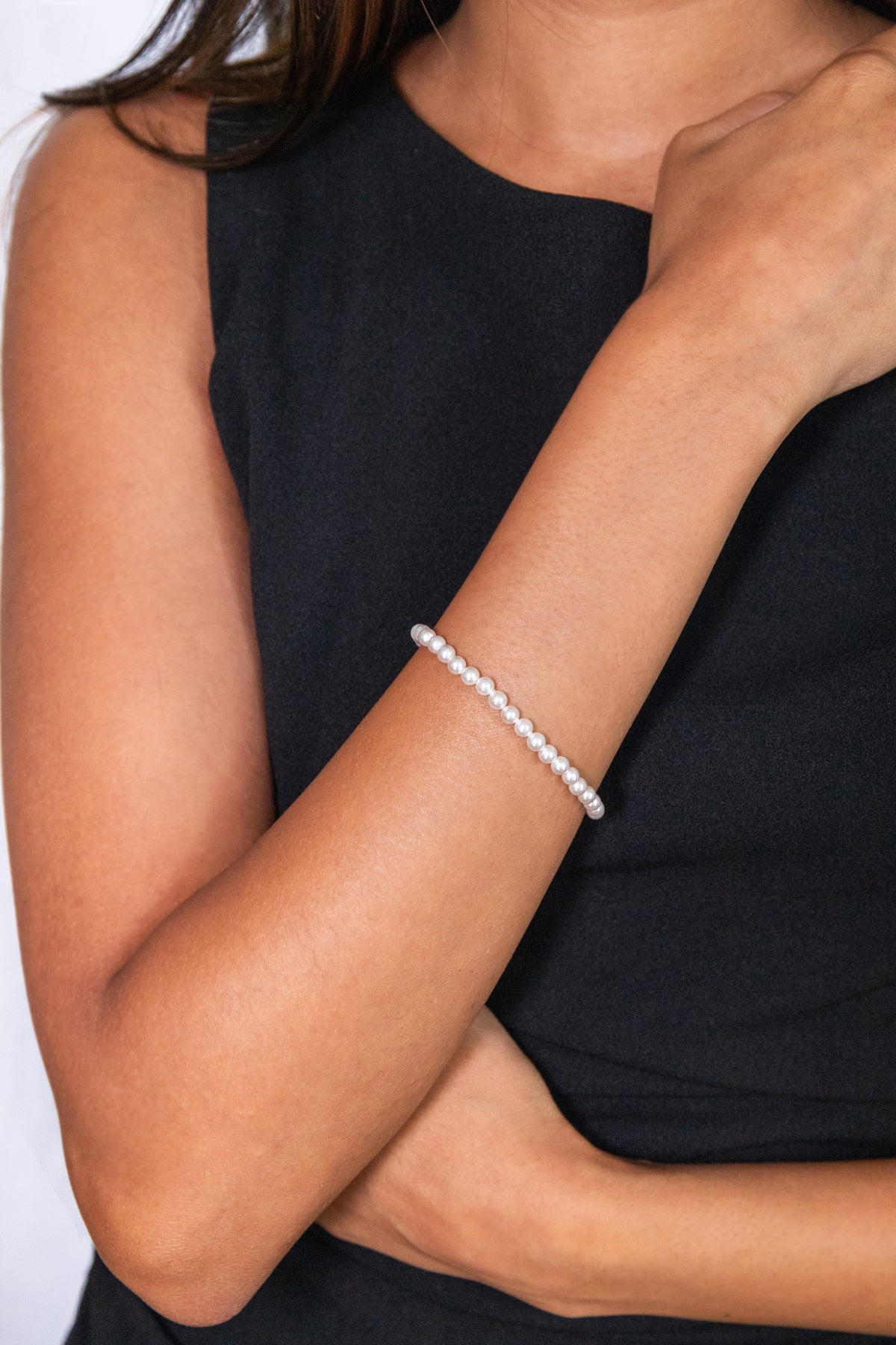 As the newest addition to our beaded bracelet series — the Augusta Bracelet will make you feel like royalty. A layer-friendly must-have featuring 7” of 4mm ivory glass beads strung on delicate round link chain, this piece also comes with a built-in extender, making it one of the most versatile pieces you will have in your jewelry collection. Gorgeous on its own, and perfect for layering, the Augusta Bracelet adds just the right amount of classic sophistication to any bracelet stack. Designer Tip: pair this piece with the Crown Bracelet for a vintage-inspired trendy look that is sure to turn heads!