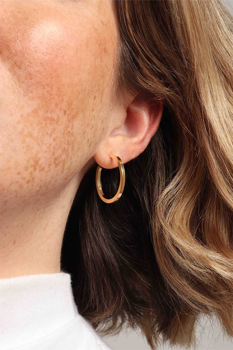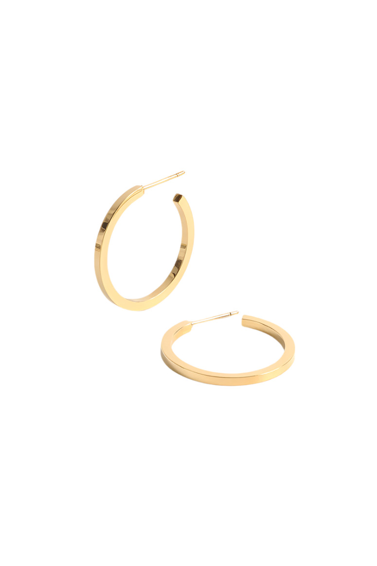 Meet your new best friend. Our most delicate geometric hoop to date is now available in a perfectly polished version. Intricately detailed to make a big statement yet light enough to wear all day long, these beautifully crafted hoops are a must-add to your accessories collection. Available in 1" + 2" + 3" diameters — the Jay Hoops are named after the designer's sister and fashion muse with her iconic effortlessly sophisticated fashion aesthetic. Fit for every single occasion, from every day wear to formal events, this hoop is made for the It Girl on the go.