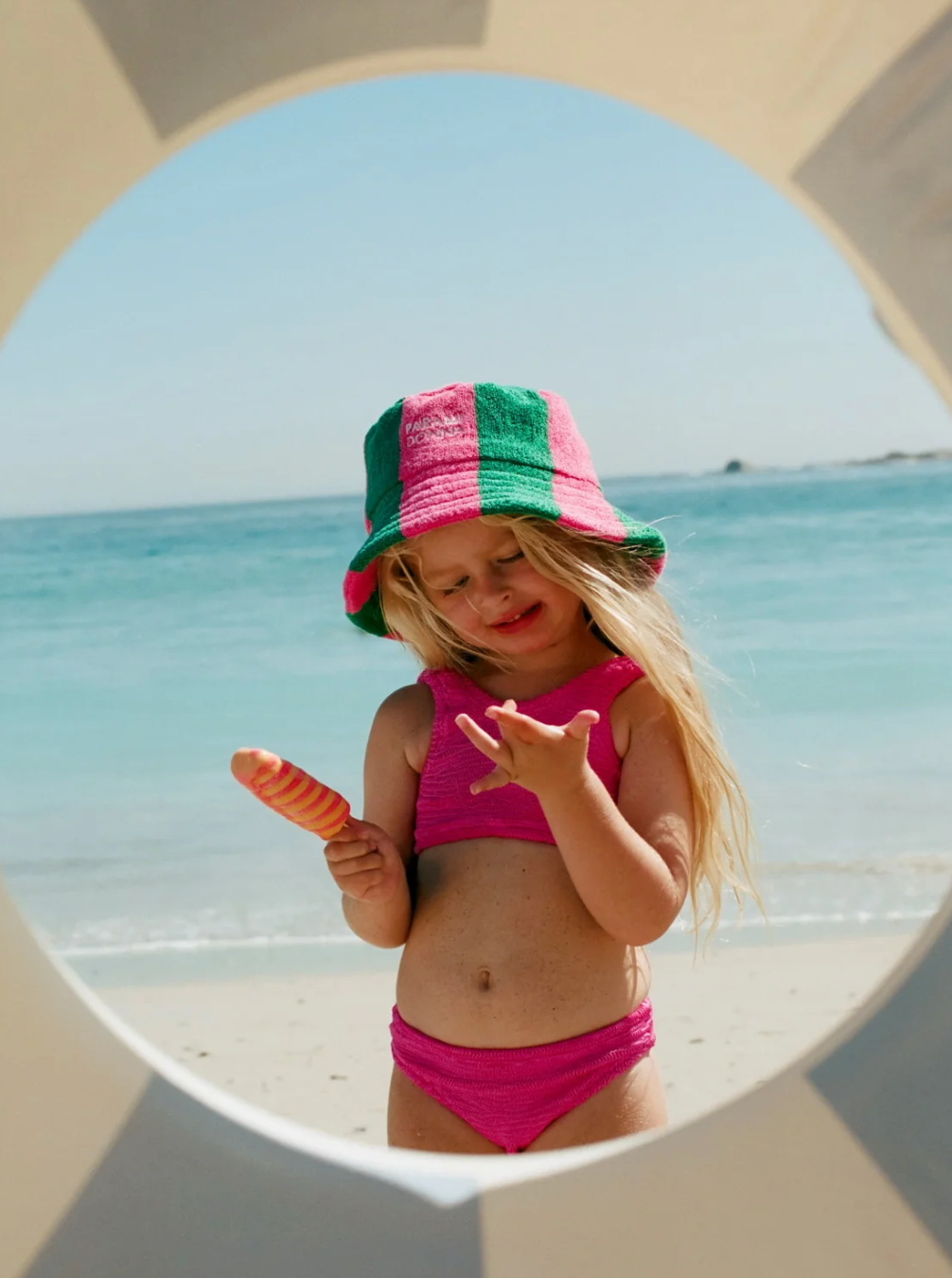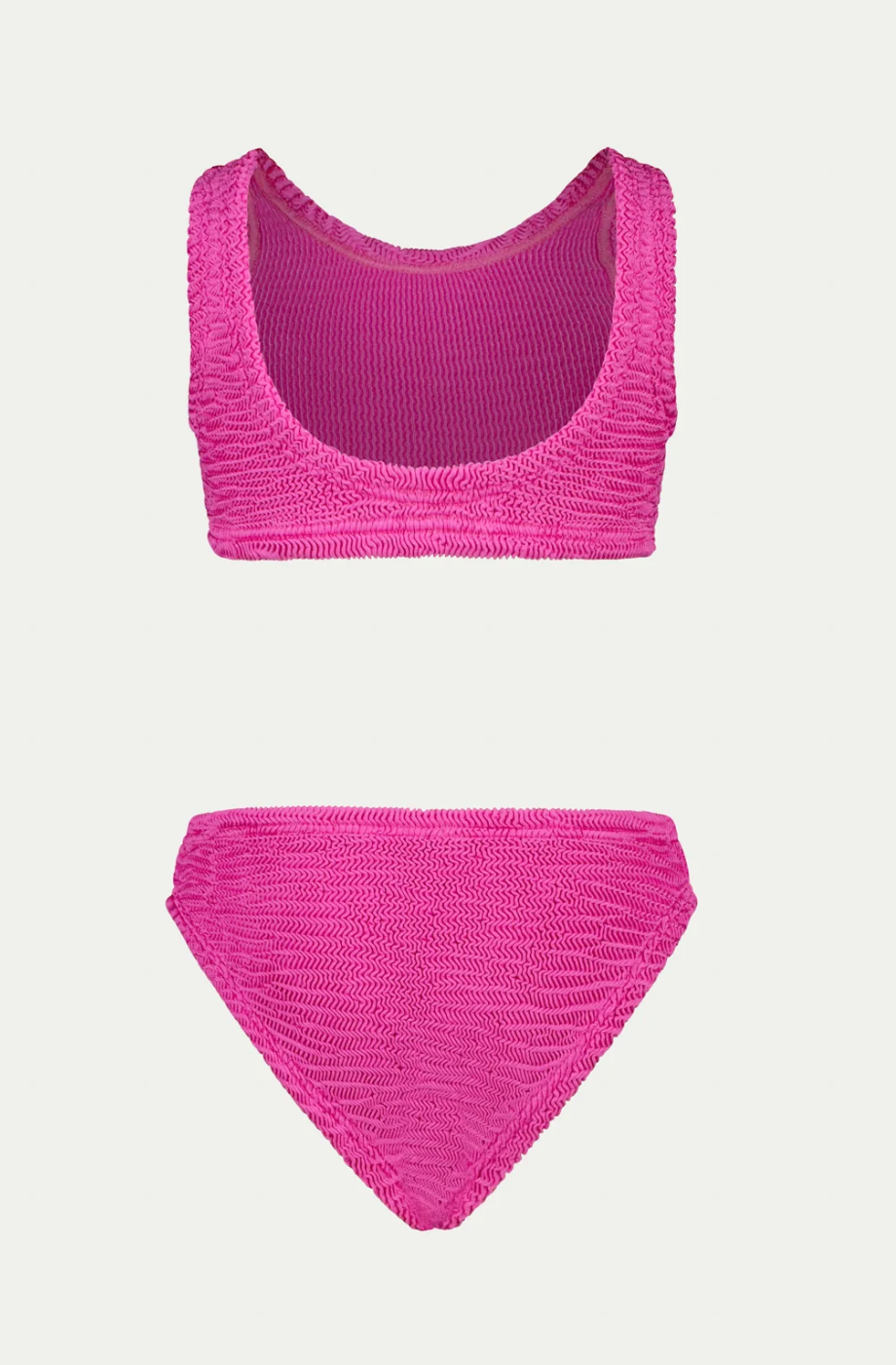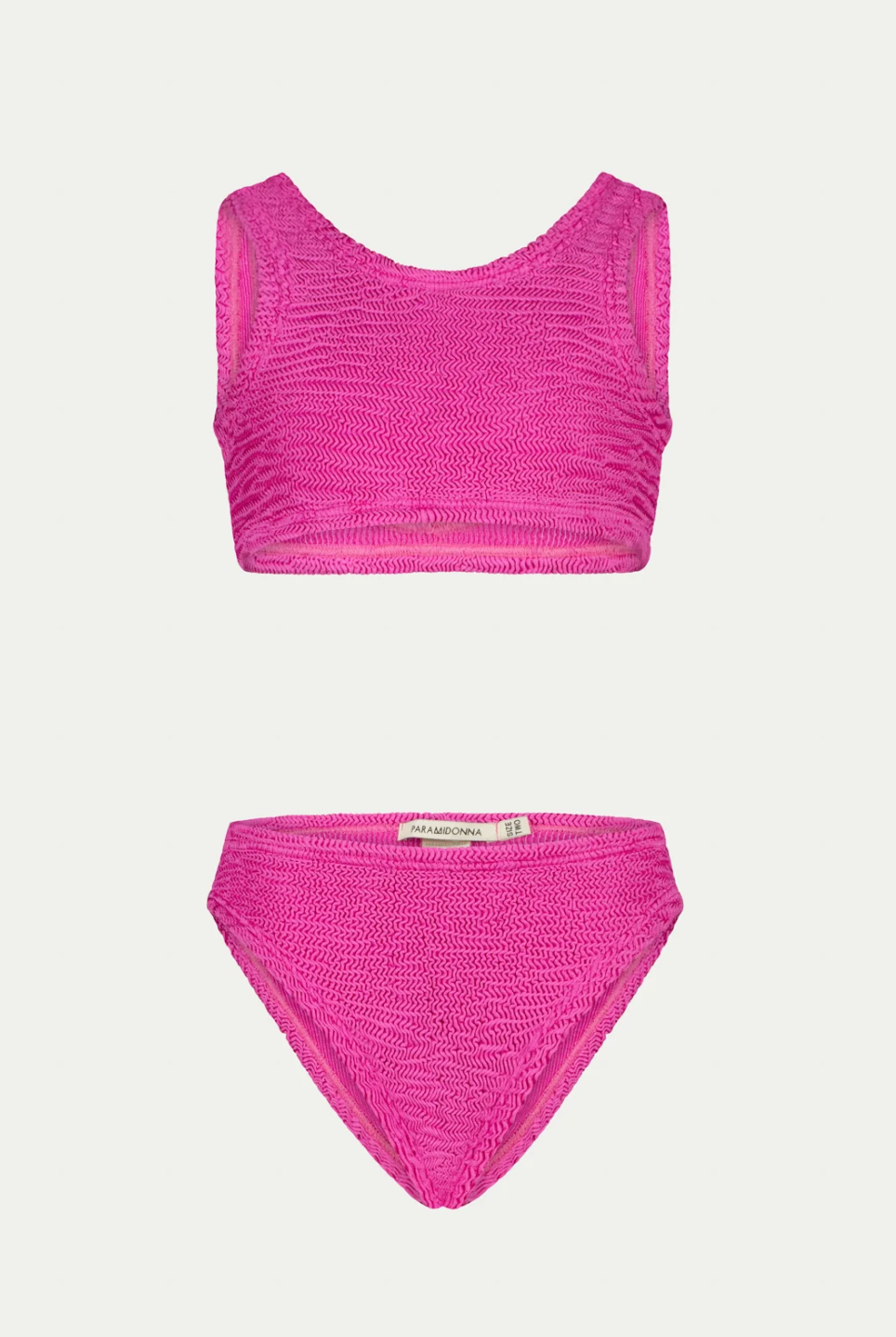 Two-piece swimsuit KATY made of exclusive elastic fabric and available in two sizes - Size 1 (suitable for children 3,4,5 and 6 years old) and Size 2 (suitable for children 7,8,9 and 10 years old). The children's swimsuit set has a classic cut with two straps and a slightly cropped bare back top, and the bikini has good coverage and a medium waist. Designed to make it easier for all mothers to choose a children's swimsuit and solving the problem of quick transition in sizes, the KATY children's swimsuit will ensure your child's comfort. We recommend pairing with a women's swimsuit from our collection in the same color and be an irresistible Mommy & Daughter at the beach.
