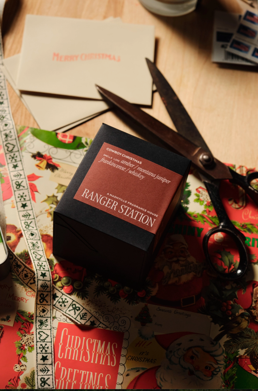 Smells like: amber / Montana juniper / frankincense / whiskey For the most wonderful time of the year, we wanted to create something that would bring all the nostalgic scents of the holidays together like family. Heavy amber and Montana juniper give classic frankincense a Ranger edge, and we round it out with just a touch of the whiskey we know you’re cracking open once the young’uns go to bed. Break out the eggnog and gather ‘round, y’all: it’s Cowboy Christmas. 8 oz. premium soy wax blend Hand-poured & packaged in Nashville, TN 40+ hour burn time Each candle comes with a perfectly paired cocktail recipe to enjoy once the candle is burned through.