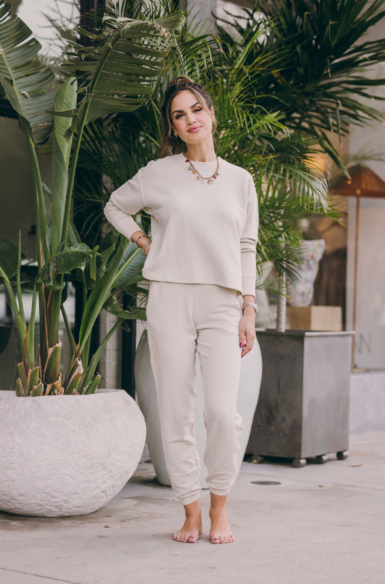 Introducing the Soft Lounge Collection by Sunni Spencer™ – where effortless style meets ultimate comfort. Crafted from an ultra-soft modal blend, the Soft Shell Jogger features a contrasting shell embroidered at the hip in gold, an elasticized waistband, and side-seam pockets. Perfect for lounging in or running around town, these joggers are as chic as they are cozy. Pair them with our matching Soft Crew Neck for an easy casual-cool set. A travel essential and a gift-worthy favorite – you’ll want one in every color!
