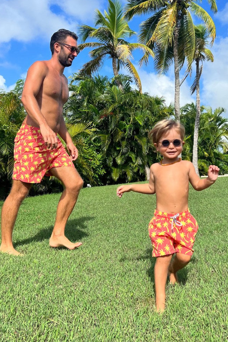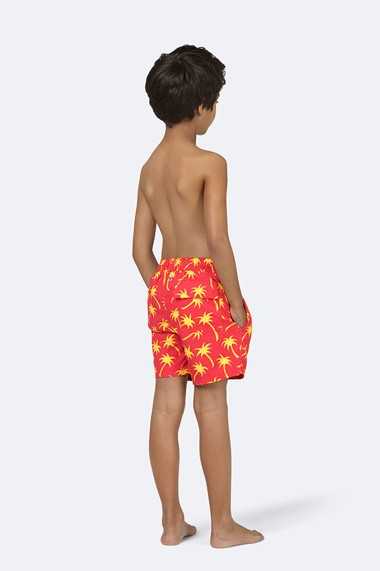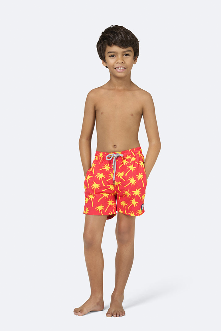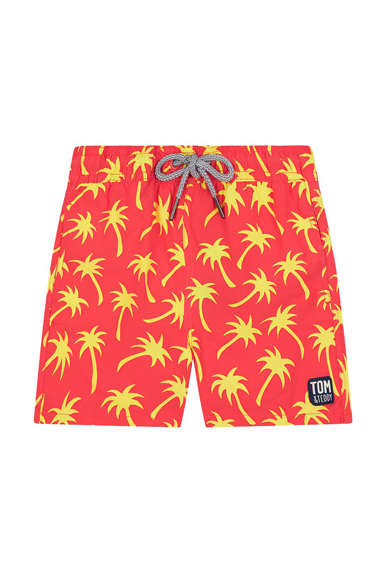 Tom & Teddy - Boys' Palm Swim Trunks - Coral & Lime