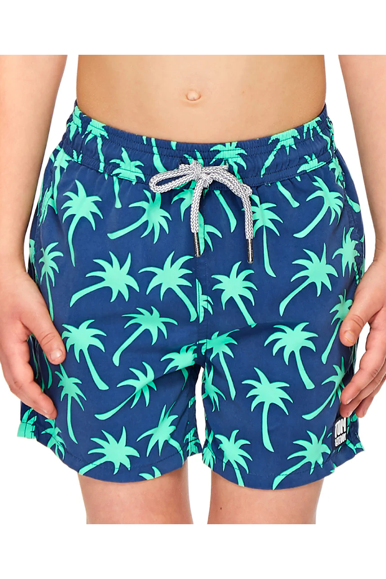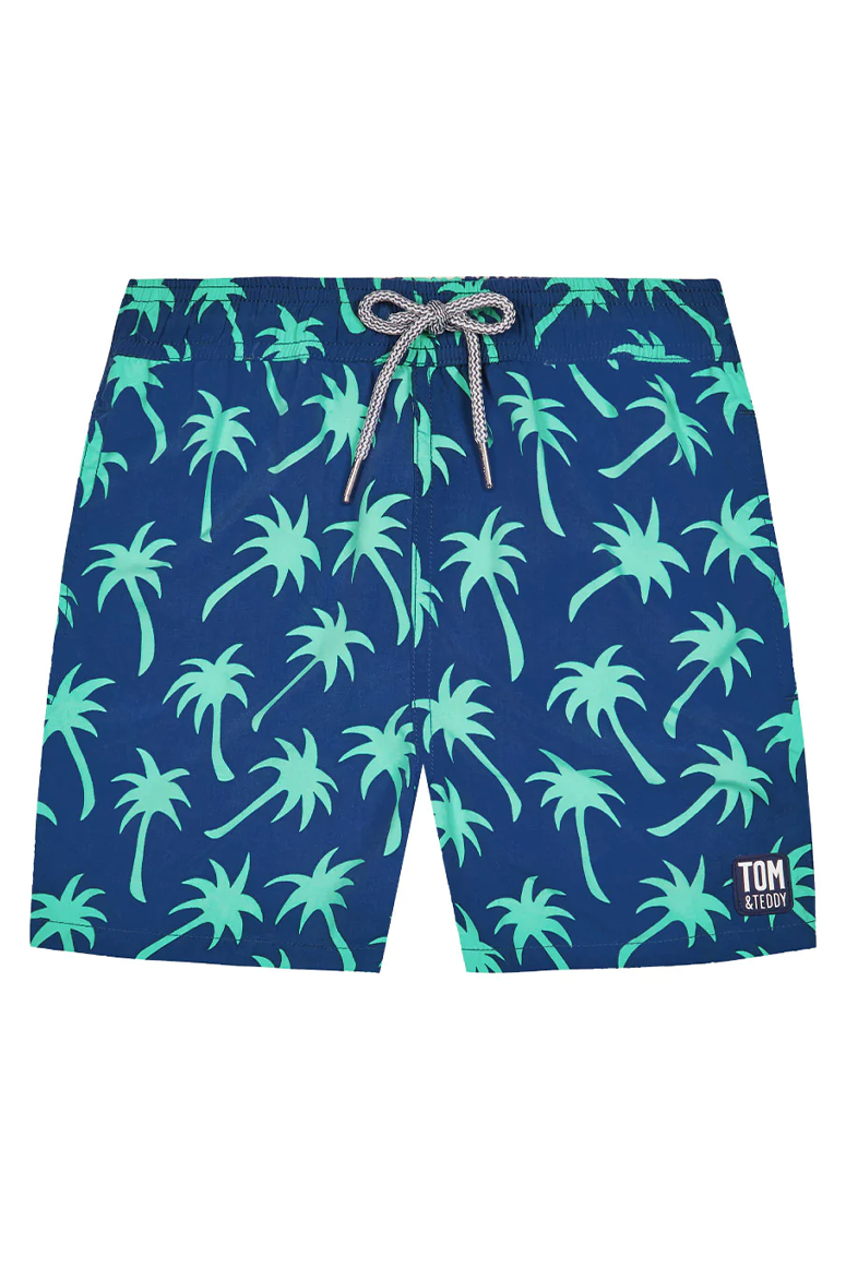 Tom & Teddy - Boys' Palm Swim Trunks - Navy & Spring Green