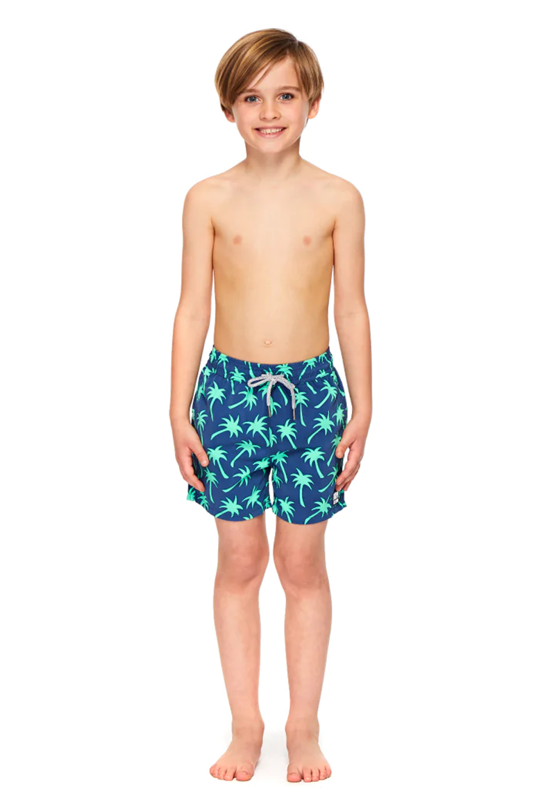 Dark blue and a lively green is our new colorway for the ever-popular Palms print. This bestselling design is bold but not loud – perfect for every warm-weather occasion! An elasticated waistband make these ultra-comfortable, wear-all-day shorts that you can co-ordinate with all your little guy’s favorite tees and polos.