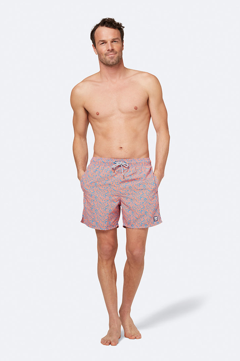 Tom & Teddy - Men's Coral Swim Trunks - Blue & Orange