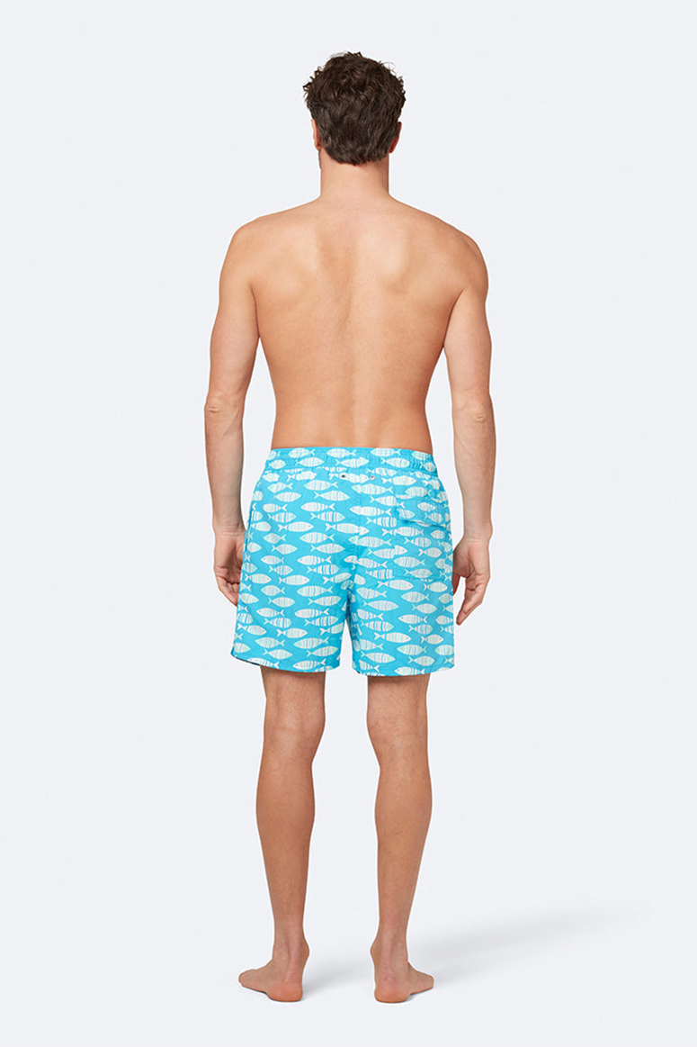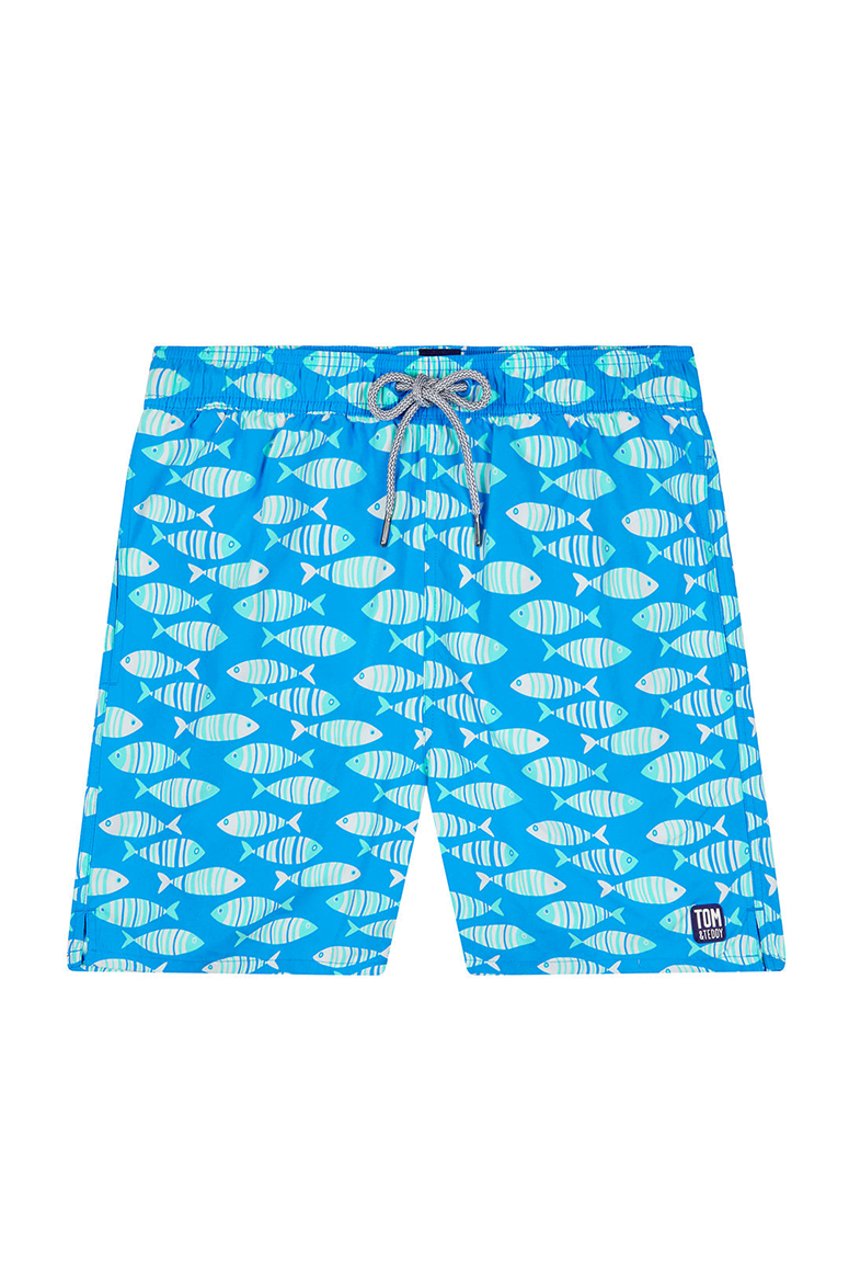 Tom & Teddy - Men's Striped Fish Swim Trunks - Blue
