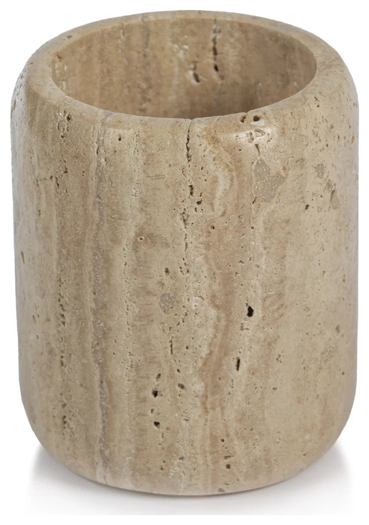 Elevate your bath with the opulent styling of the marble tumbler. Crafted of travertine marble in soft beige color, this stunning bath accessory will fill your space with pure elegance.