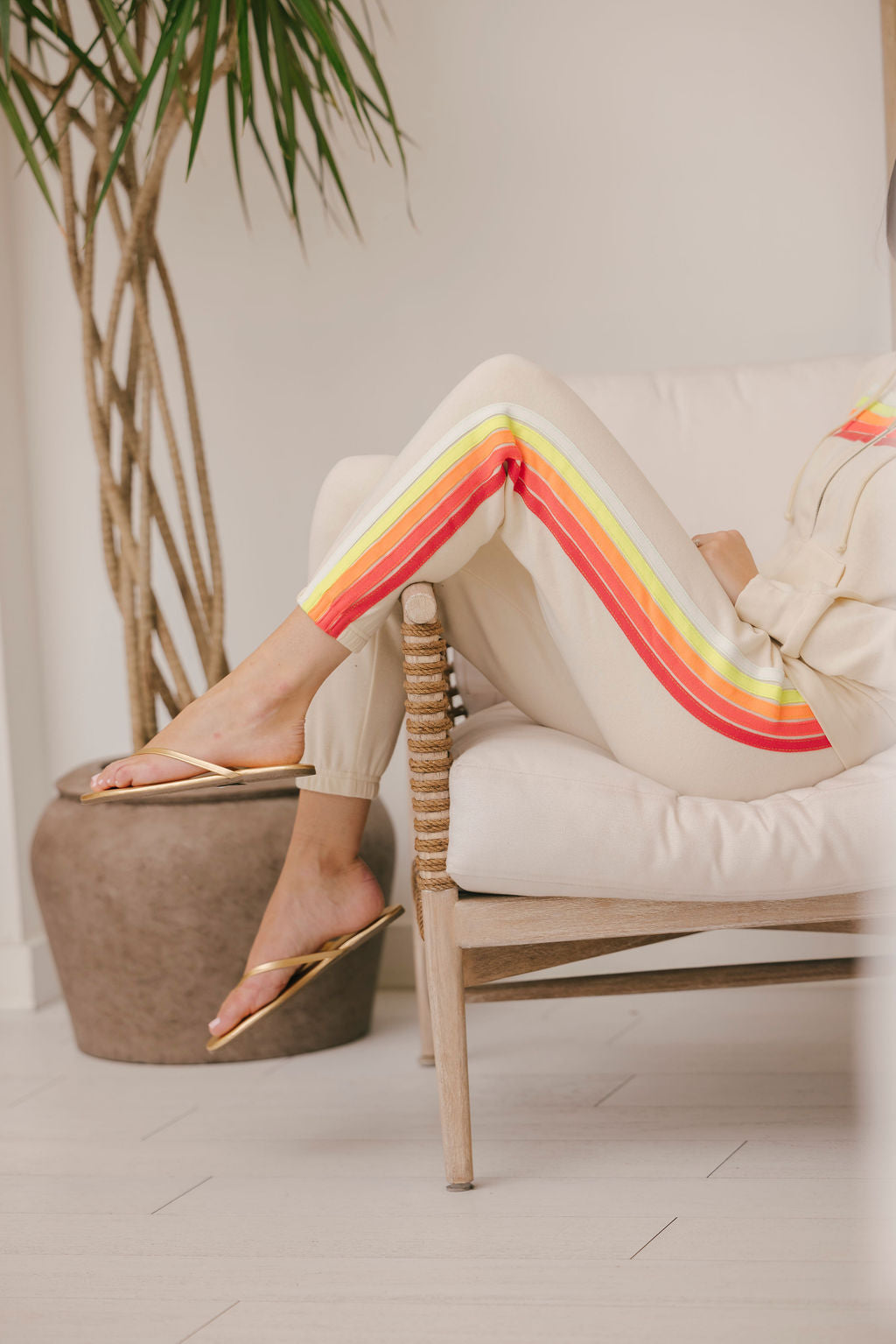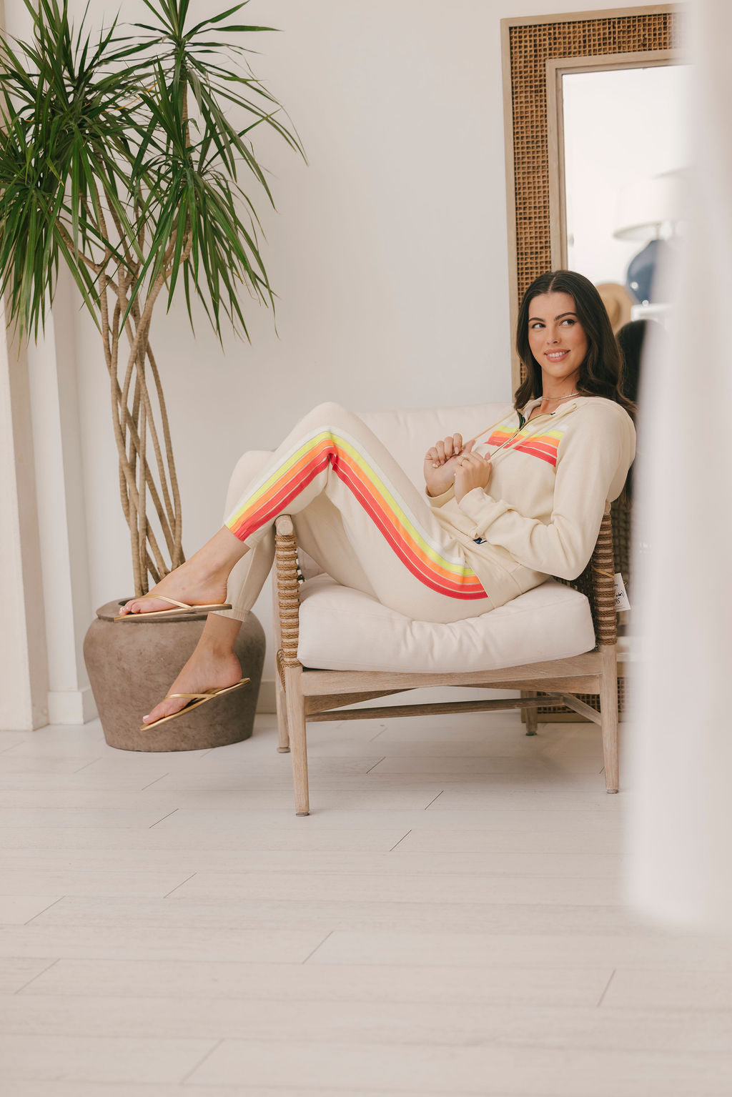 Aviator Nation - 5 Stripe Sweatpants - Vintage White / White Neon