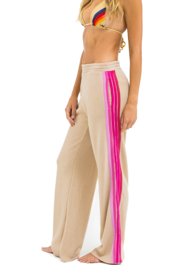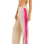 Aviator Nation - Wide Leg 5 Stripe Sweatpants - Sand / Pink
