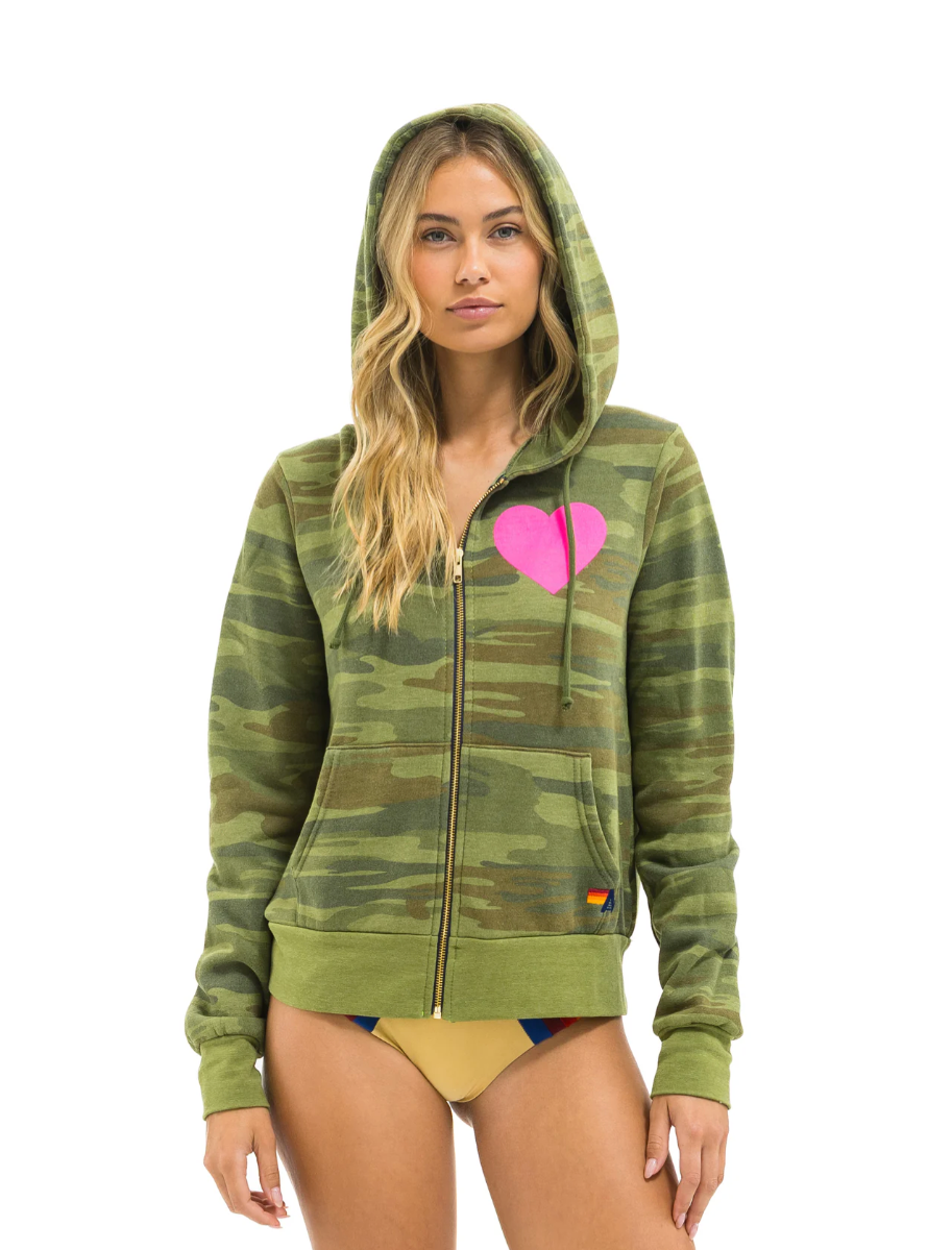 Aviator Nation - Zip-up Heart Hoodie - Camo / Neon Pink