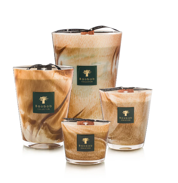 Inspired by the colors of the High Atlas mountains, the Tichka candle is made from hand-blown glass in shades of brown, where the power of the craftsman’s breath shines through in ever-changing swirls. The wax spreads a woody scent of Atlas cedar, patchouli and vetiver as it burns.