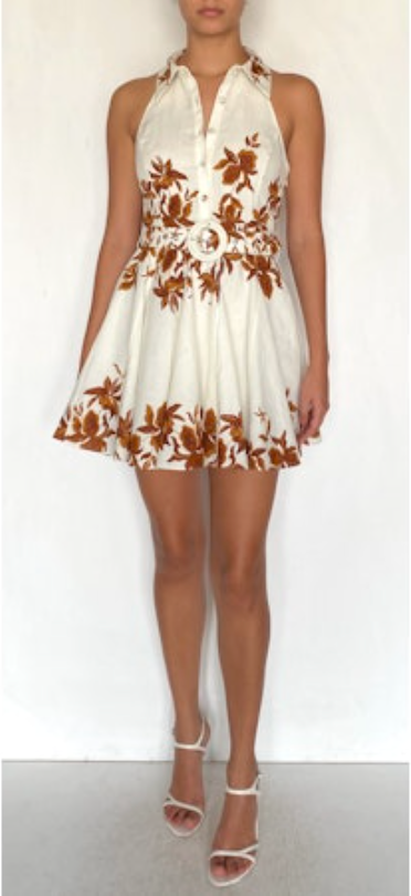 AYRA IVORY LINEN COTTON SHORT DRESS WITH BUCKLE BELT