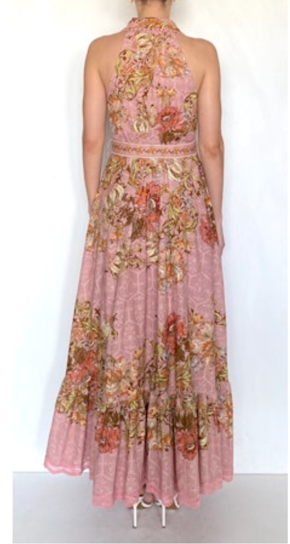 SULA DUSTY PINK COTTON SCHIFFLI LONG SHIRT DRESS WITH BUCKLE BELT