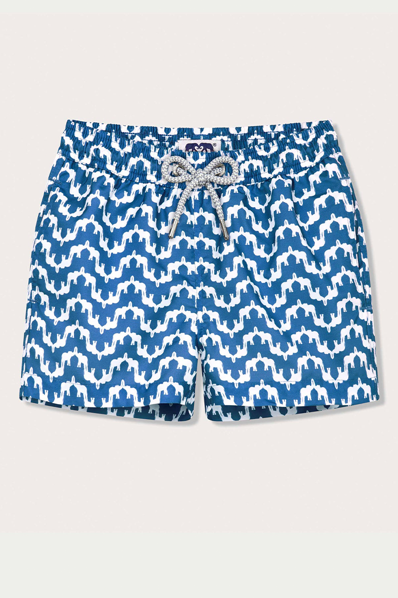 Time to dive into summer with our 'Elephant Palace' boys’ swimming trunks. This exclusive print gives the illusion of elephants and mystical Indian palaces, taking inspiration from memories of Oliver and Rose’s travels to India. This year, we support our long-standing partner, Elephant Family, to help promote elephant-human coexistence. Sustainability and helping endangered wildlife is at the heart of everything we do. Made from recycled plastic, complete with a soft mesh interior, these quick-dry boys’ swim trunks are both kind to the planet and comfortable. Discover the men’s version for father and son to match in style.