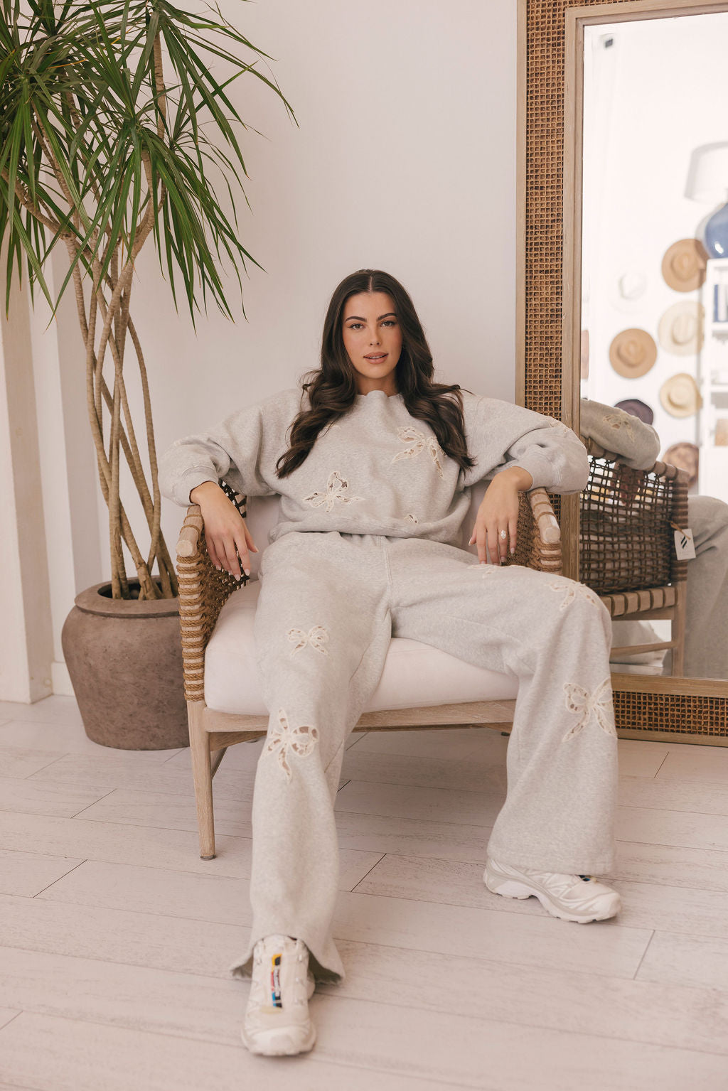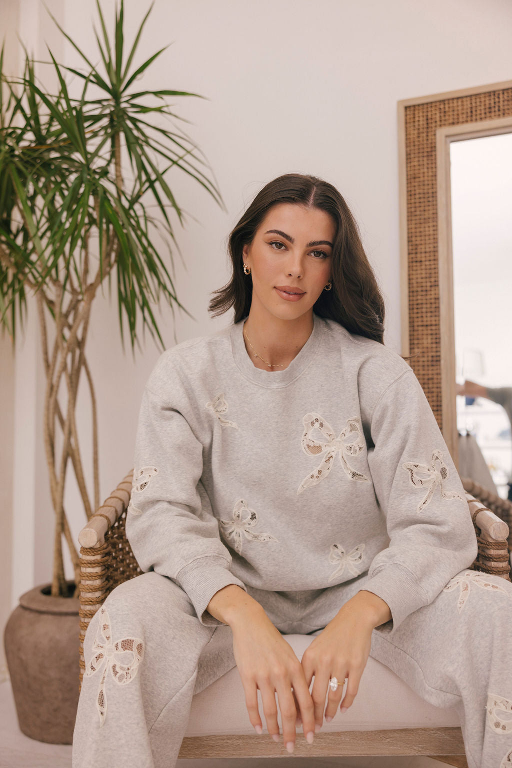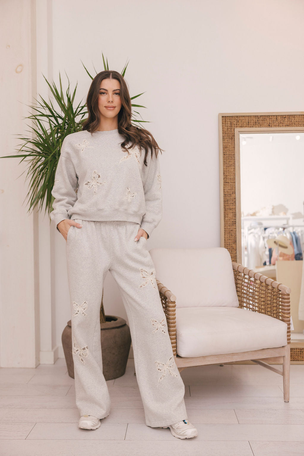 LoveShackFancy - Elma Lace Bow Sweatpants - Heather Grey
