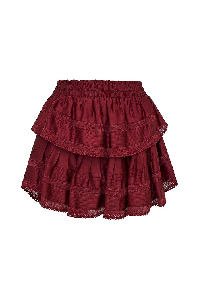 LoveShackFancy - Ruffle Mini Skirt - Oxblood