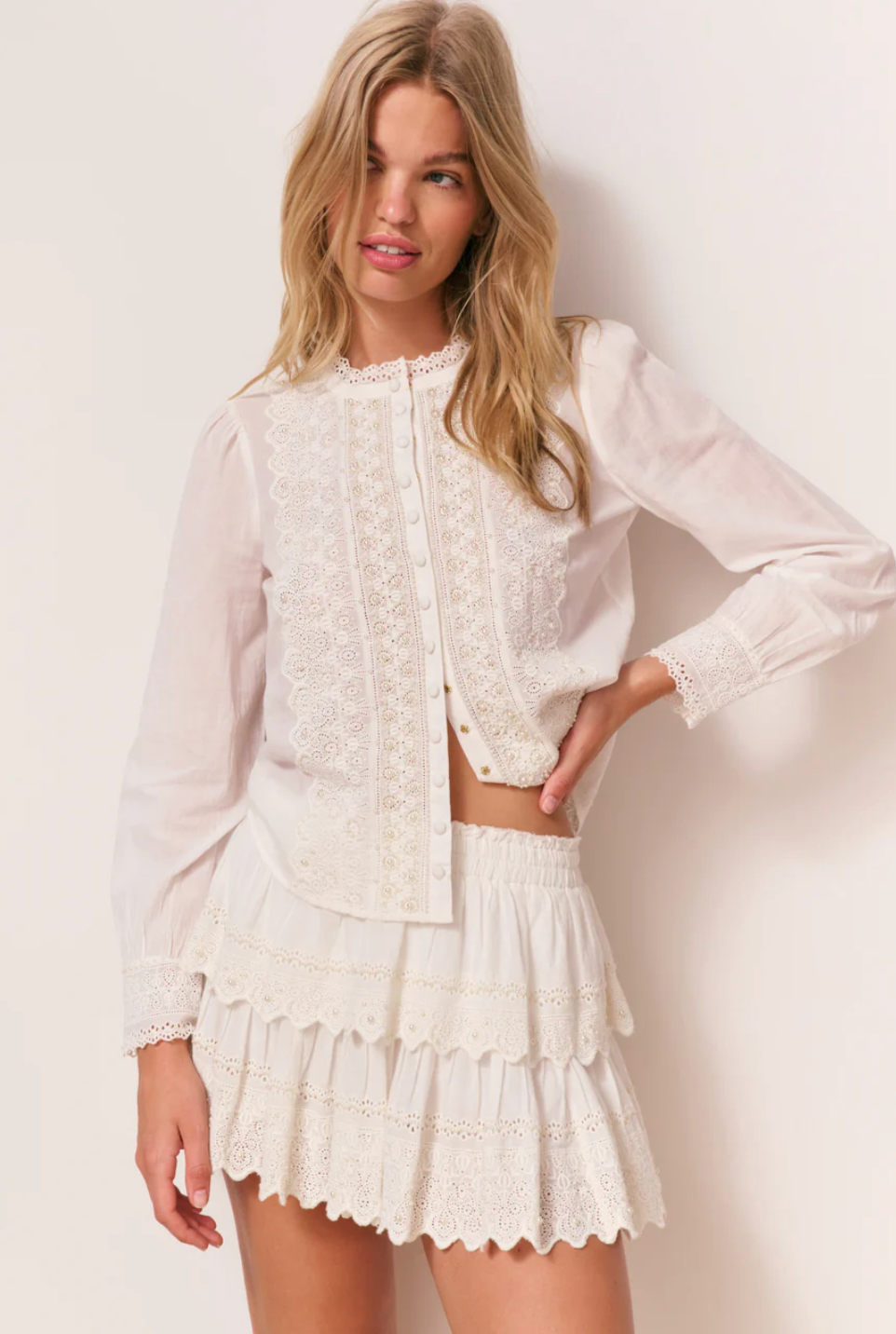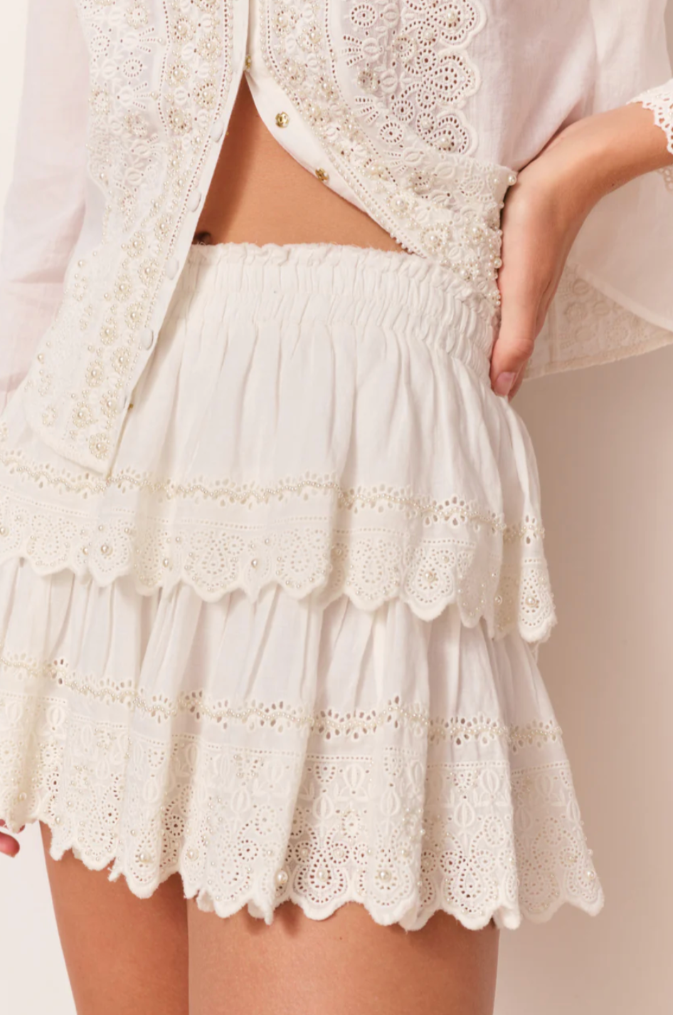 LoveShackFancy - Ruffle Mini Skirt - Pearl / Off White