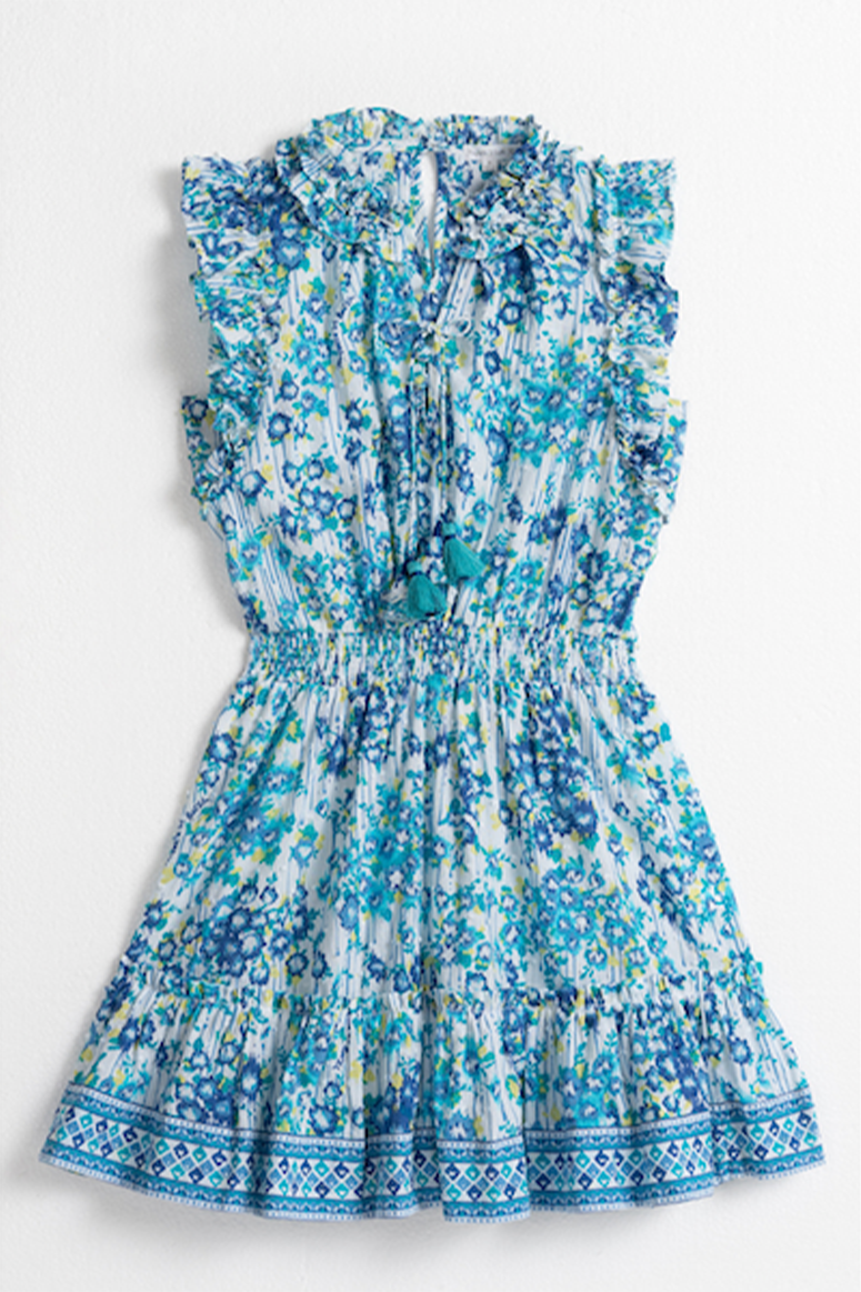 Poupette St. Barth - Kids Triny Mini Dress - Blue Aquarelle