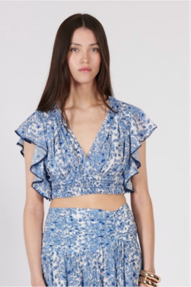 Poupette St Barth - Pearl Top - BLUE AQUAFLORA