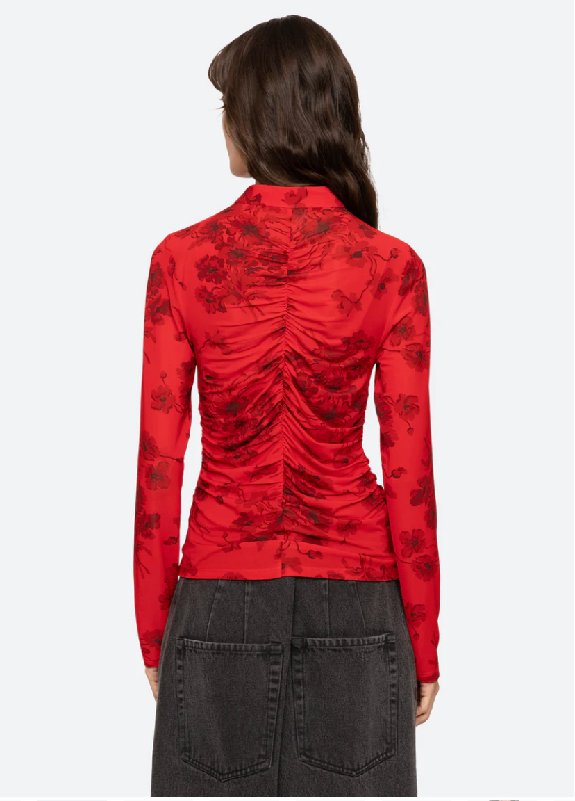 The Cornelia floral print long sleeve top is designed with a high neckline and detailed ruching along the front and back, creating a flattering, softly gathered silhouette. Its long sleeves and romantic print lend an effortlessly polished finish.