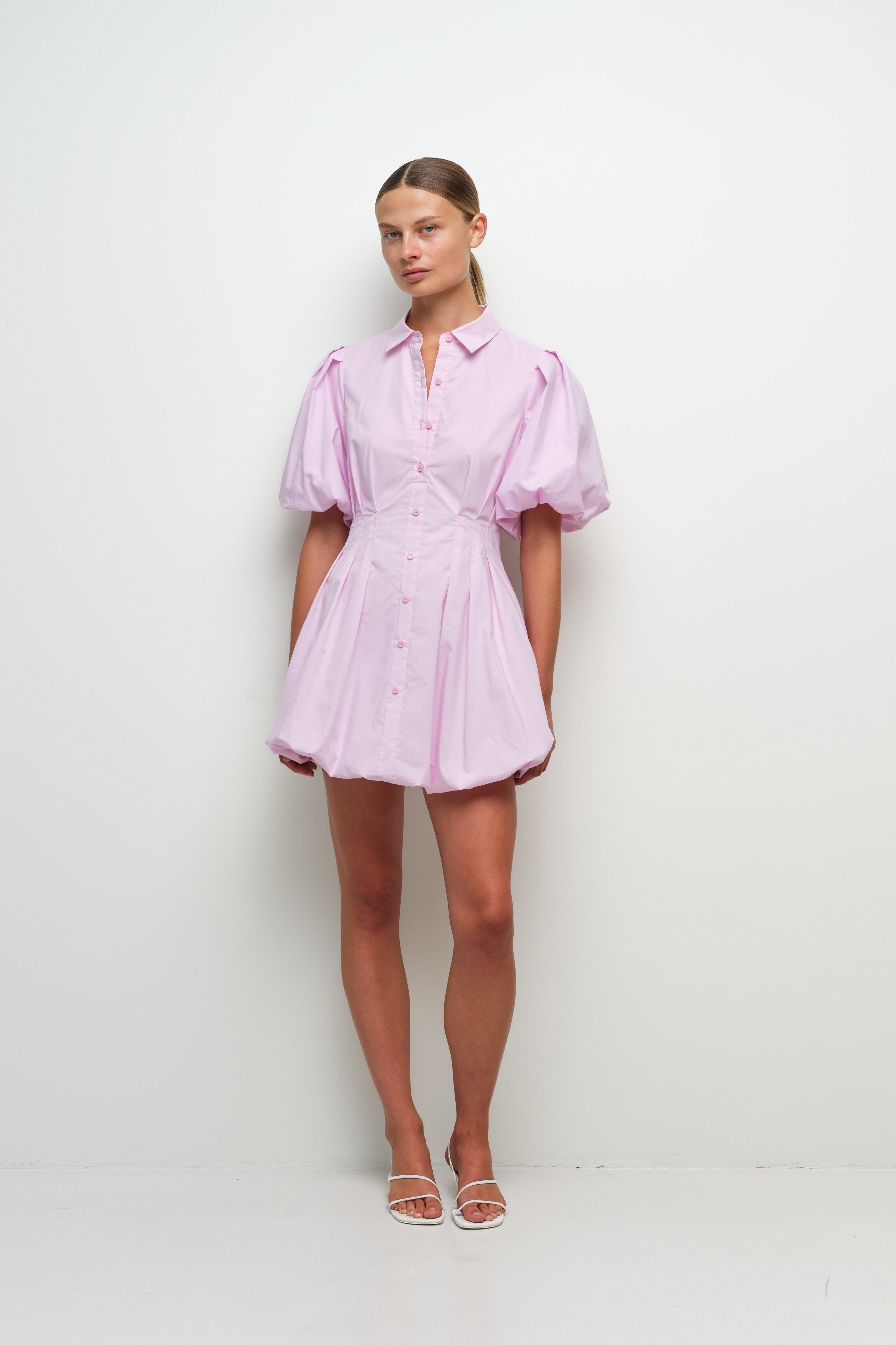 SIMKHAI - CLEO BALLOON PINTUCK MINI DRESS - Tulip