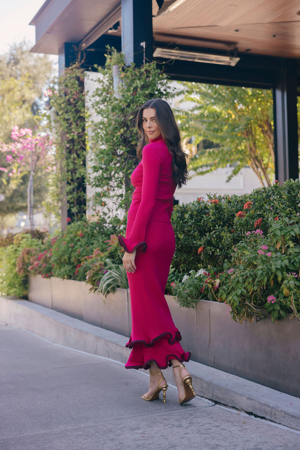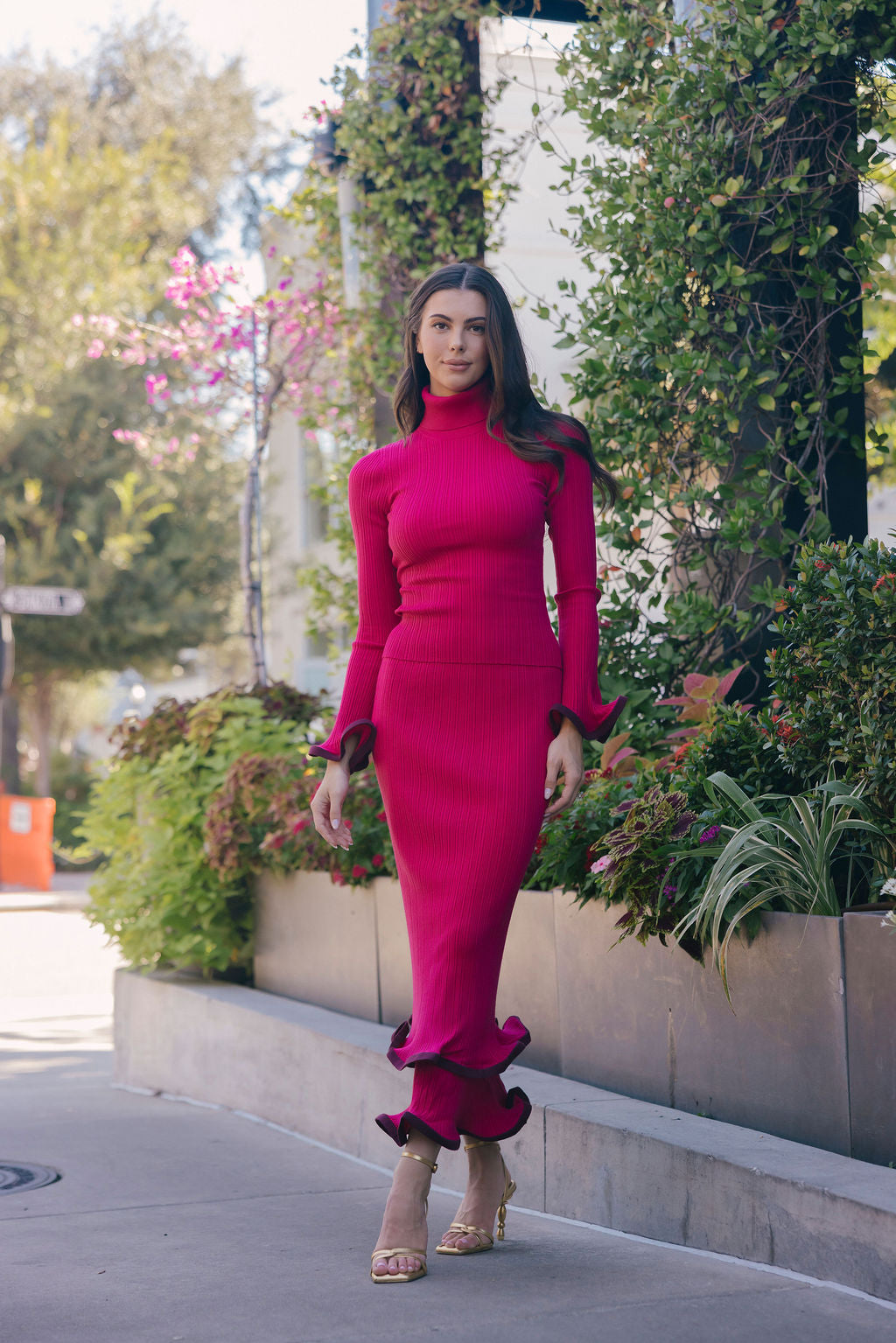 Simkhai Millie Midi Skirt in bright Pomegranate see our matching top the Lola Turtleneck