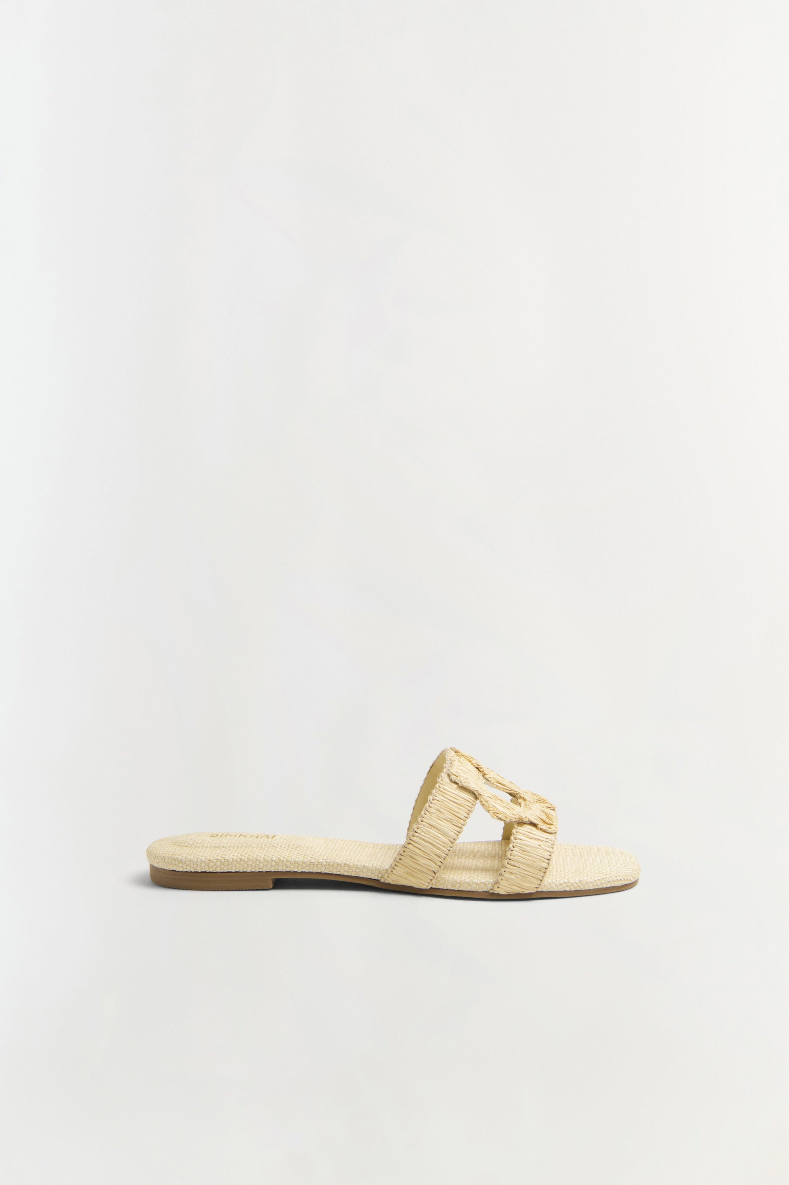 Upper: 100% Natural RaffiaLining: 100% Sheep LeatherOutsole: 100% RubberWipe Clean With Dry ClothImported