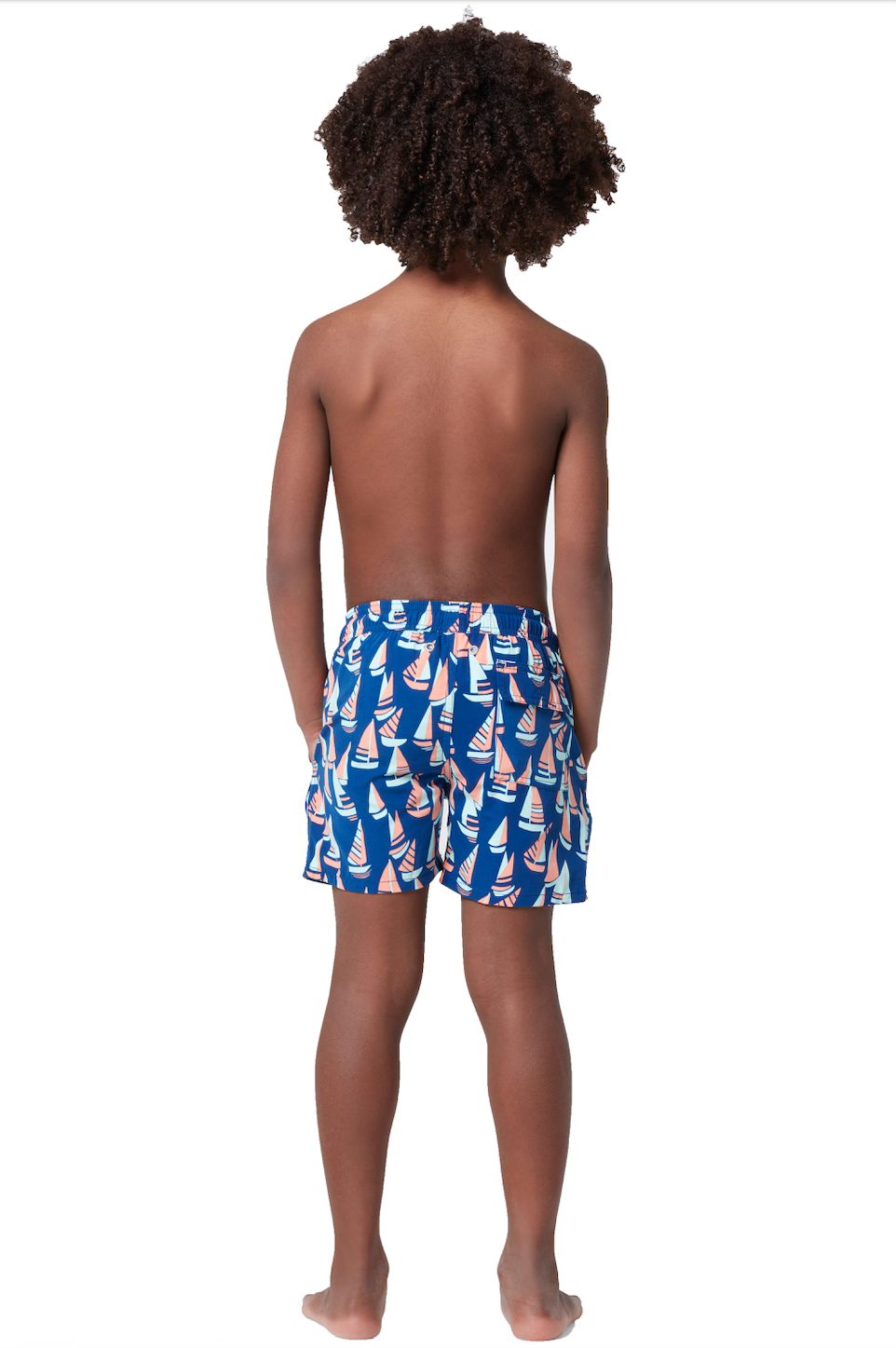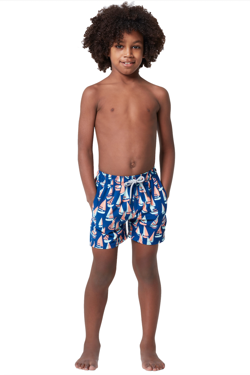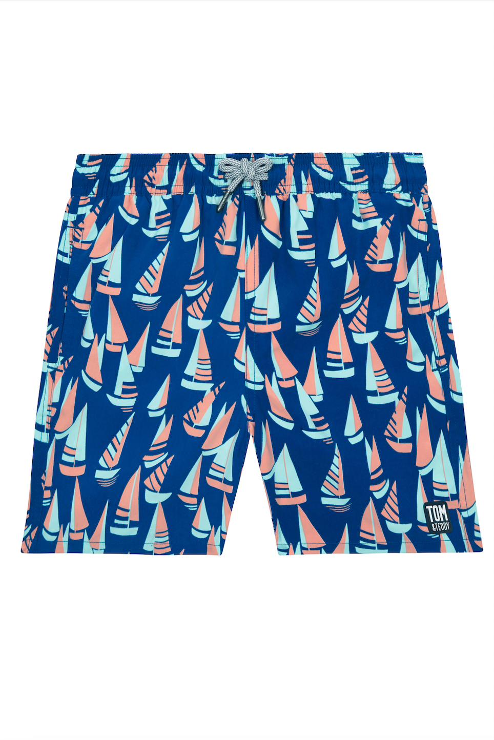 Tom & Teddy - Boys' Marine Boats Swim Trunks - Blue/Coral