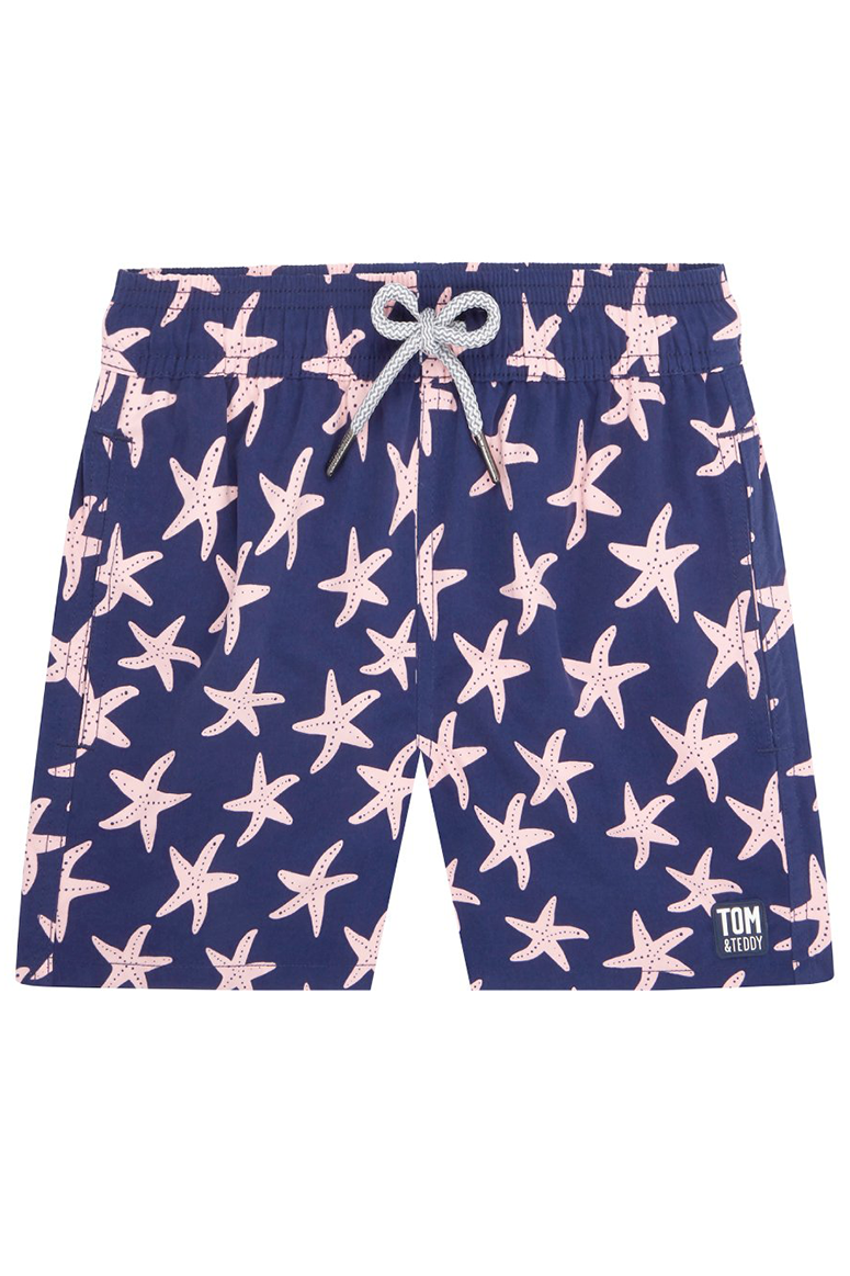 Tom & Teddy - Boys' Starfish Swim Trunk - Blue & Blush