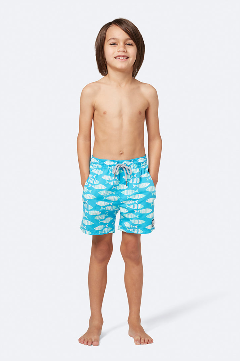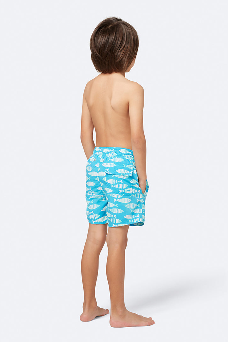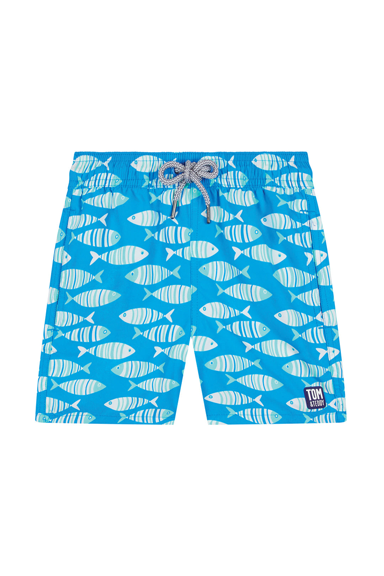 Tom & Teddy - Boys' Striped Fish Swim Trunks - Blue